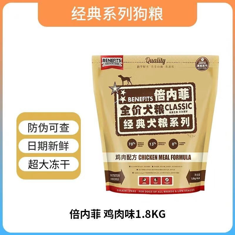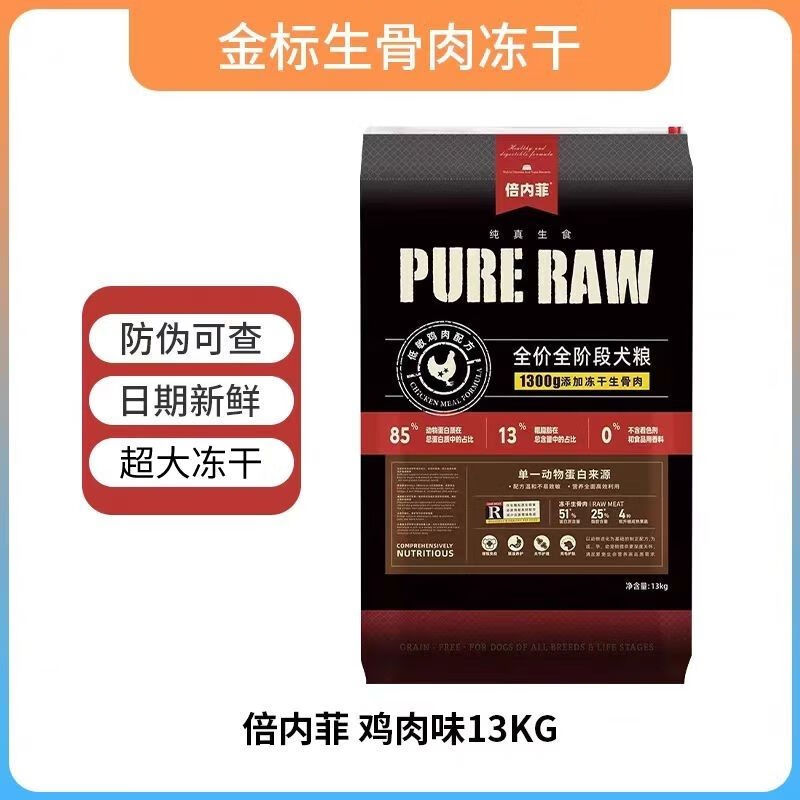 倍内菲狗粮经典12KG金标无谷生骨肉冻干粮牛羊肉鸡肉幼犬成犬狗粮 鸡肉配方(促进吸收)-1.8KG