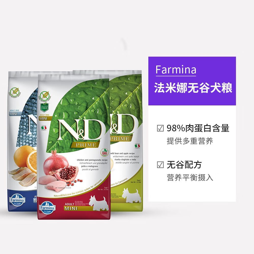 法米娜狗粮意大利法明娜鸡肉石榴鲱鱼甜橙猪肉苹果成犬粮 【刮码】鲱鱼甜橙小型犬成犬7kg 0g 效期6个月左右