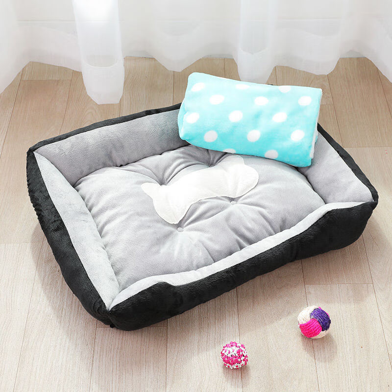 狗窝冬季保暖泰迪小型犬狗床宠物窝大型犬毛狗垫子猫窝四季通用 黑色骨头 毛毯 S:50*40CM(建议5斤内)