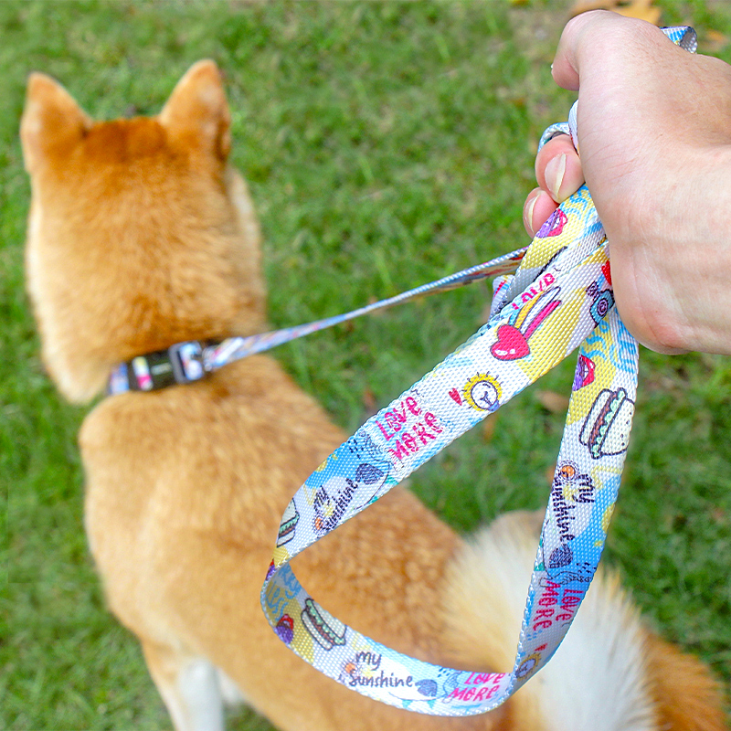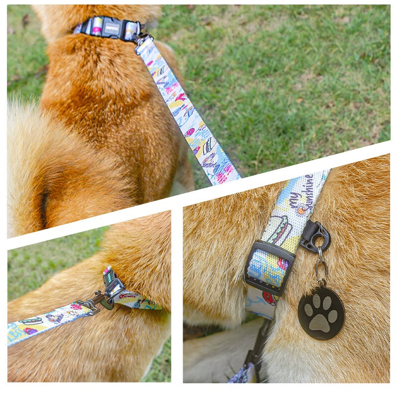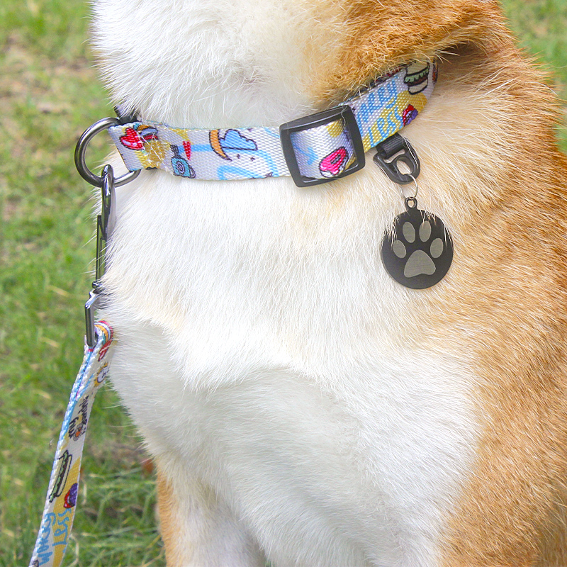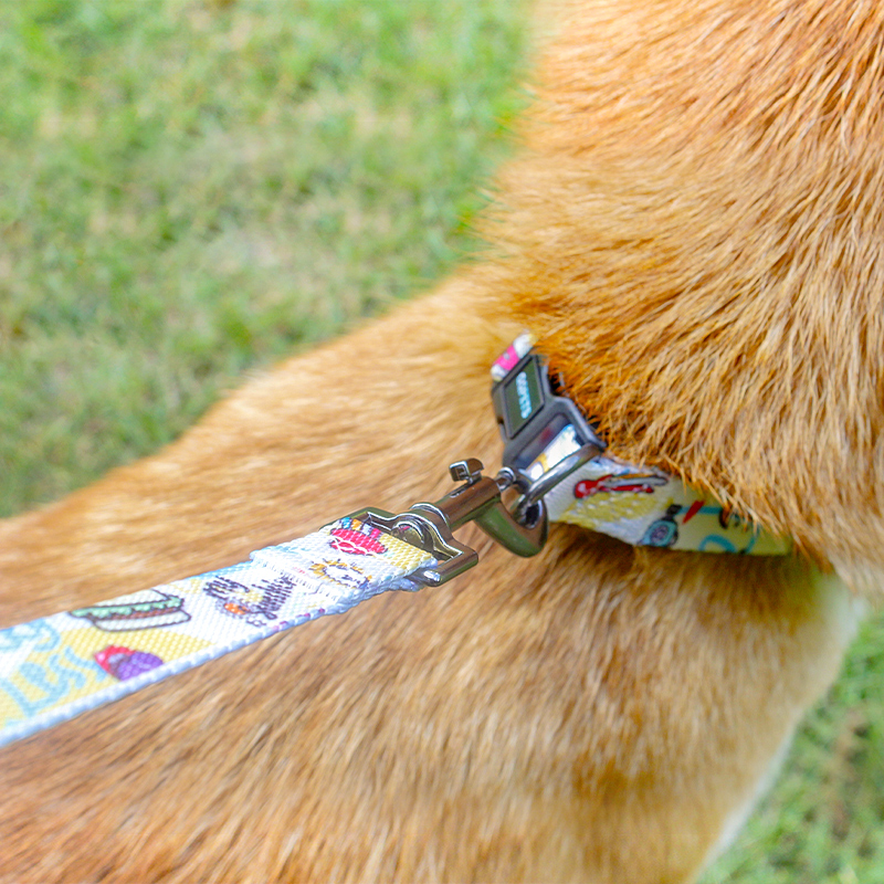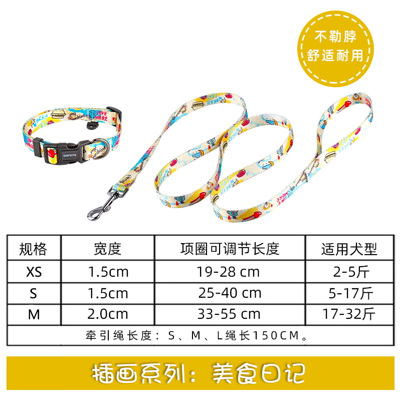 QQPETS宠物牵引绳狗狗项圈泰迪柯基卡通狗绳柴犬幼犬狗链子中小型犬遛狗绳猫狗通用 美食日记-套装 XS-超小型(2-10斤)