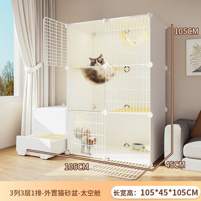 蔻丝猫笼子超大号猫窝猫咪别墅带厕所一体适合大猫家用室内猫舍屋猫笼 白【105*45*105】外置猫砂盆 猫厕一体:猫砂盆 太空舱 猫砂铲