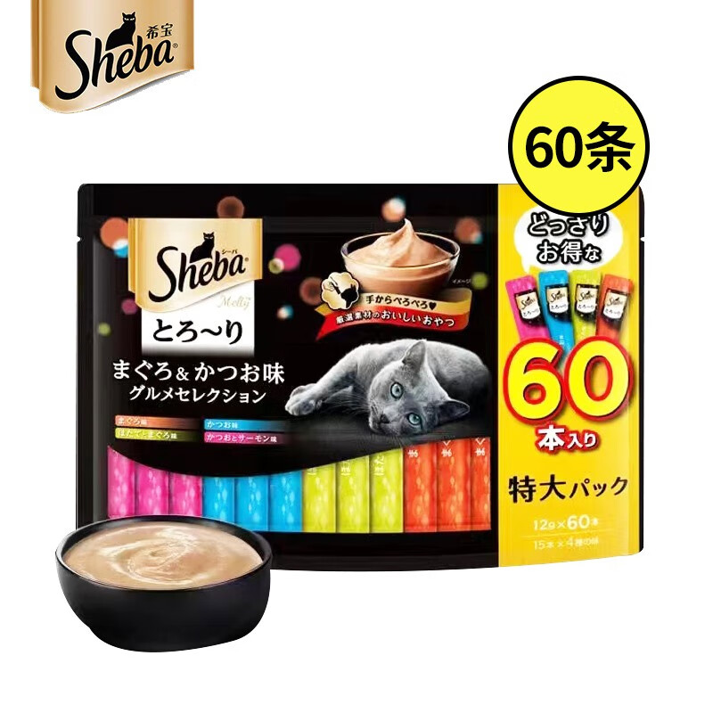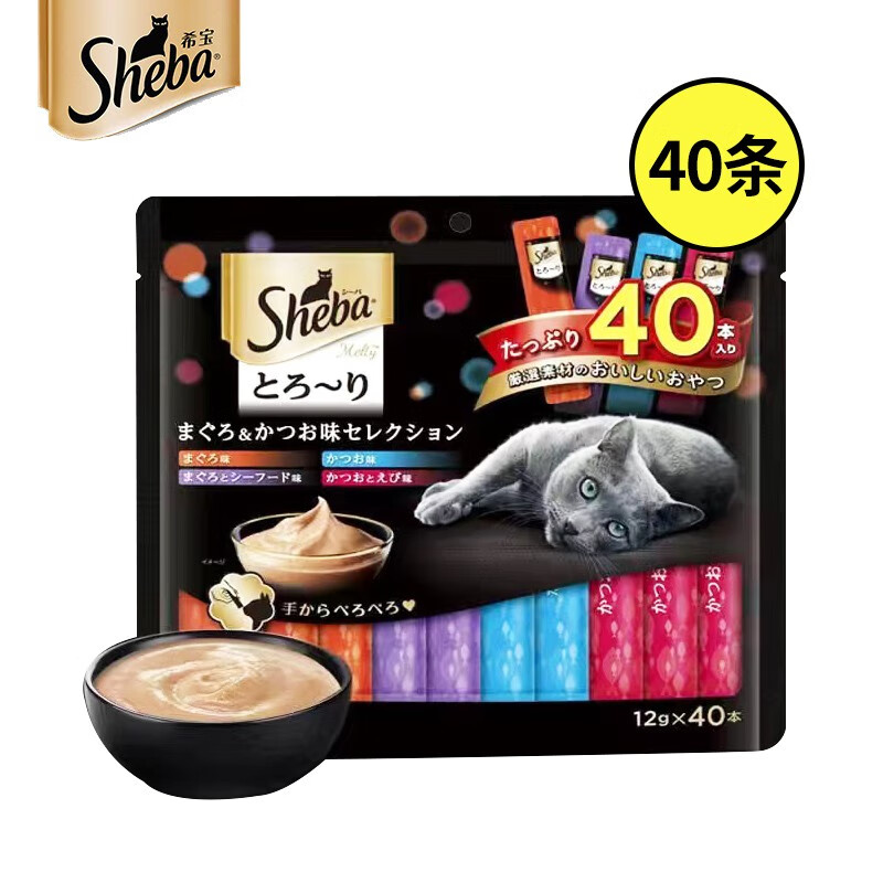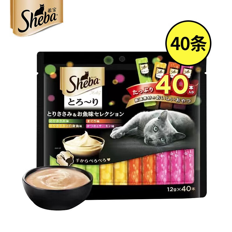 希宝猫条猫零食 猫咪零食妙鲜包猫条 宠物猫粮猫干粮伴侣 T50鰹鱼吞拿鱼奢享及虾混合12g*40支