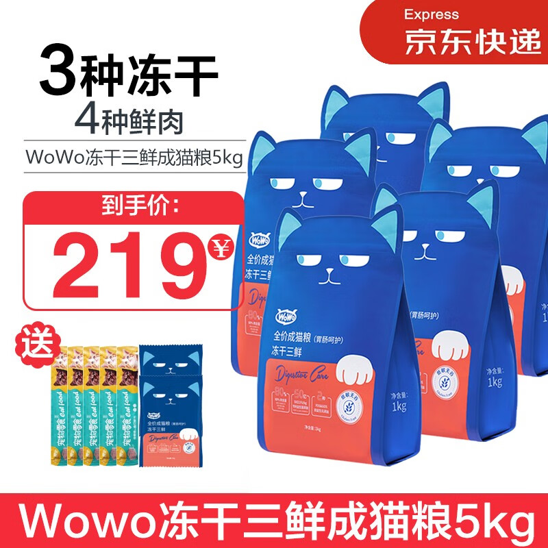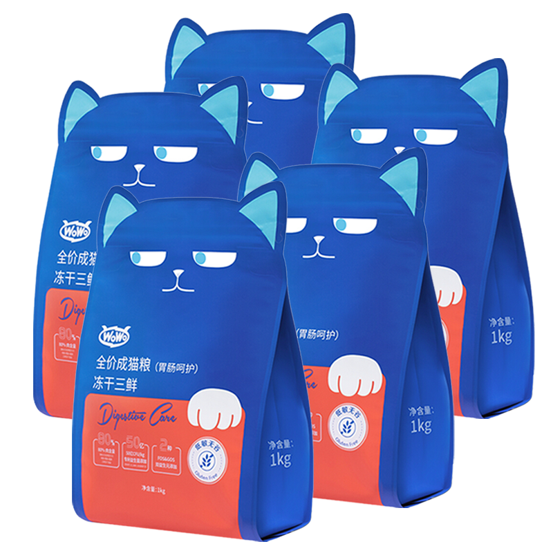 【找客服领大额券】wowo喔喔猫粮 无谷冻干三鲜全价猫粮 英短美短布偶成猫粮 5kg(1kg*5袋)