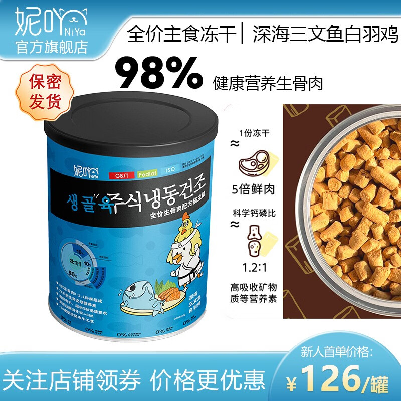 妮吖NiYa 全价主食冻干猫粮主粮98%生骨肉 高蛋白增肥发腮桶装 深海鱼白羽鸡冻干(含两罐试吃)