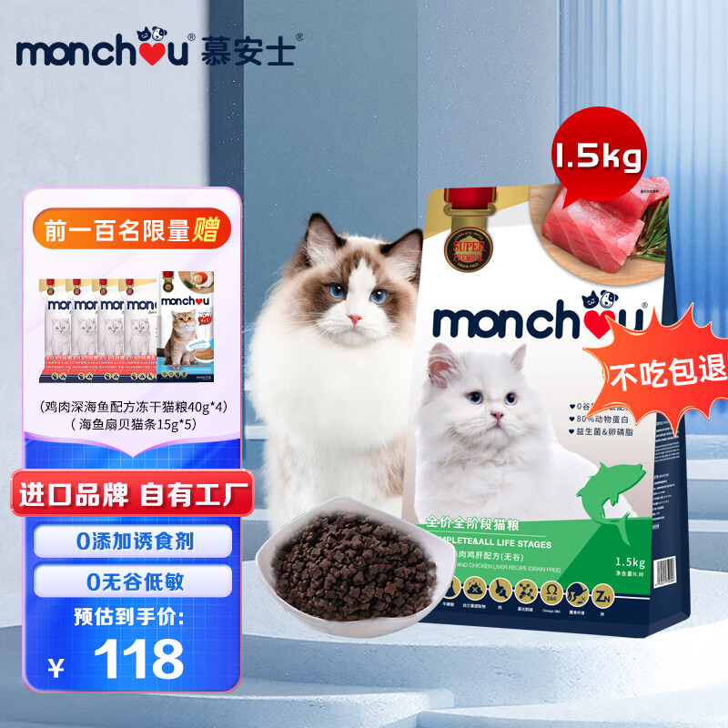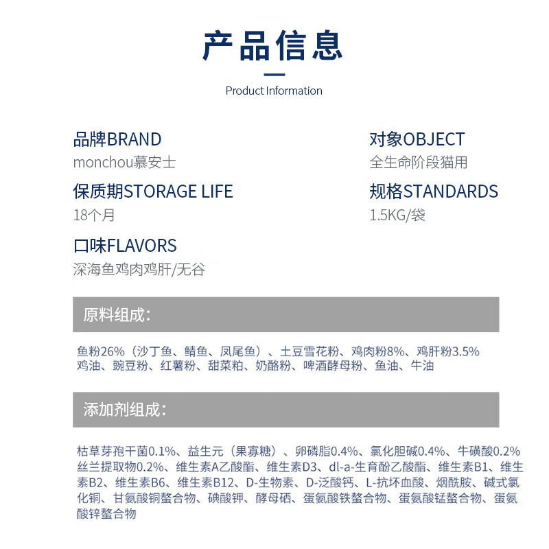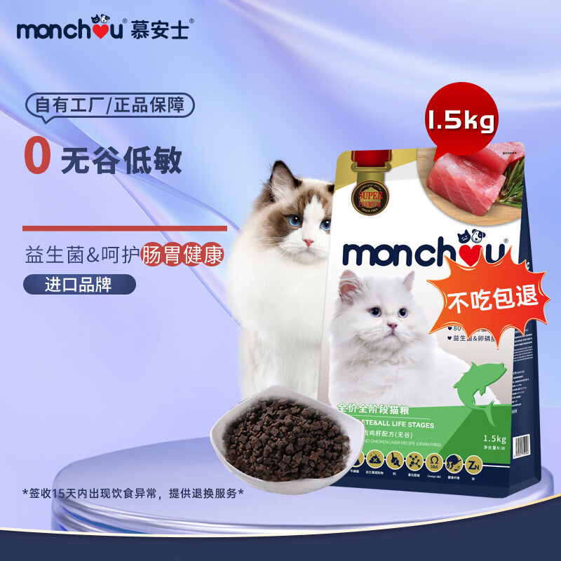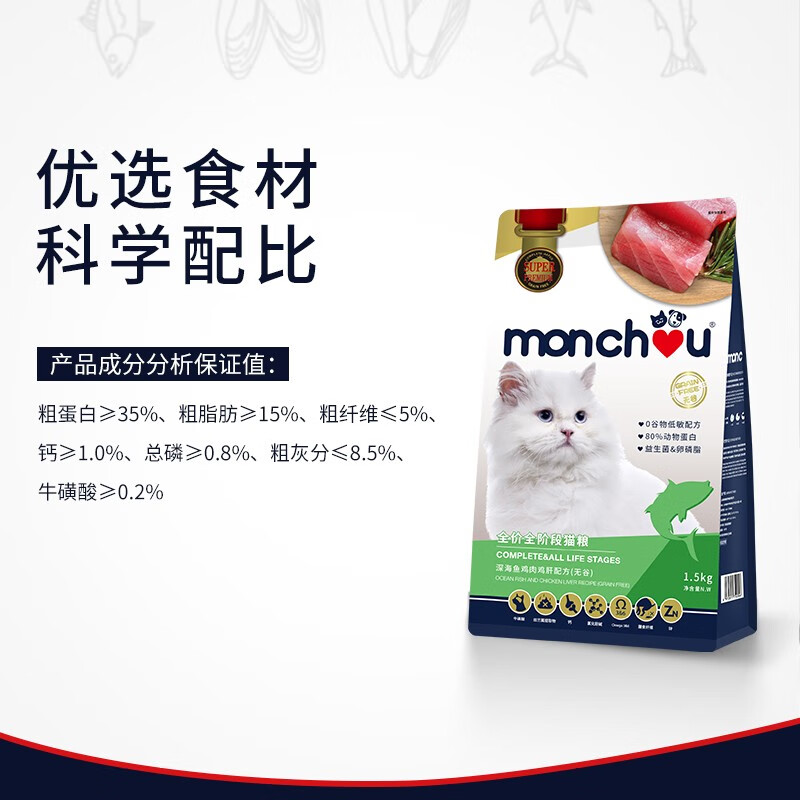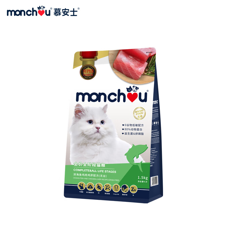慕安士(monchou)泰国品牌幼猫成猫猫咪低敏深海鱼鸡肉鸡肝无谷猫粮1.5kg