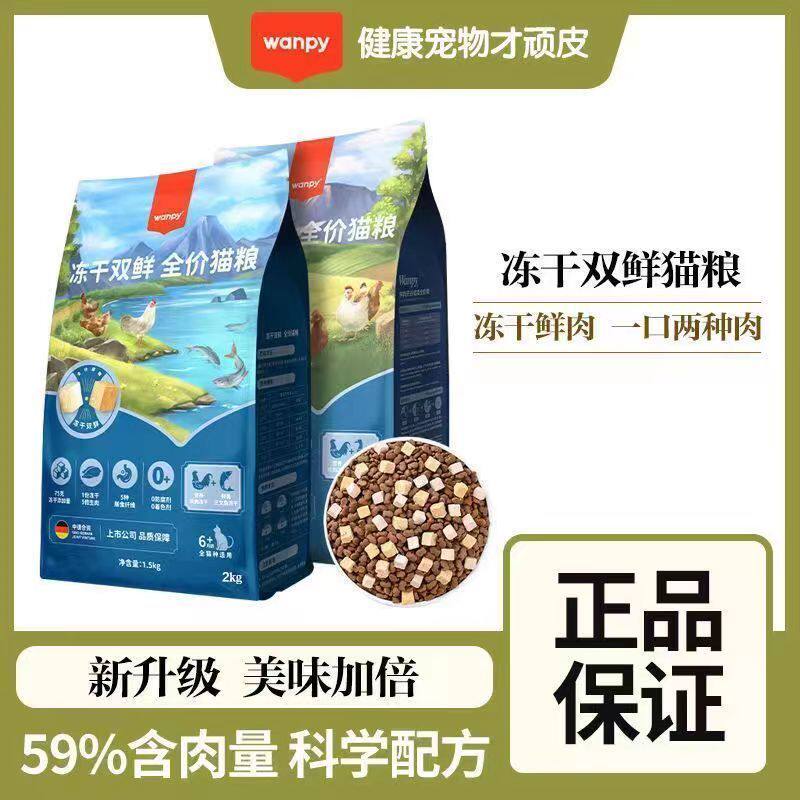 Wanpy顽皮双鲜猫粮幼猫成猫增肥发腮营养全价冻干双拼猫粮1.5kg