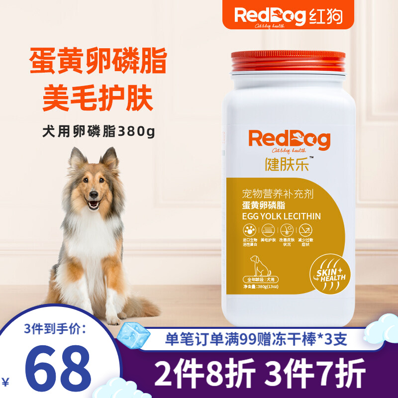 红狗RedDog 蛋黄卵磷脂猫狗通用 宠物浓缩软胶囊颗粒 美毛护肤亮毛爆毛增毛 进口活性蛋白 猫雪鼻 卵磷脂(狗用)380g