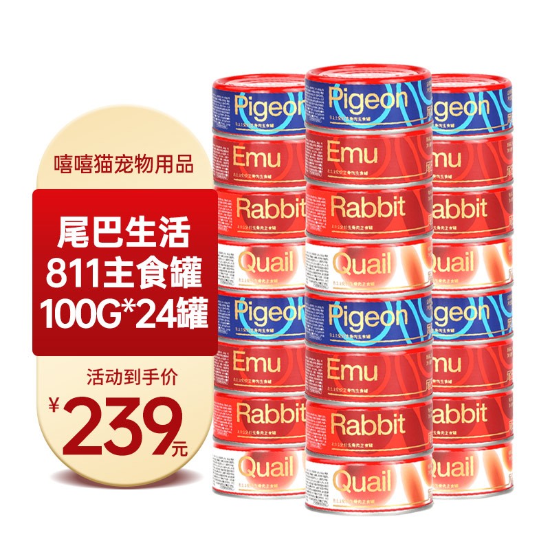 FURRYTAIL尾巴生活811主食罐猫咪全价生骨肉主食罐湿粮包猫粮猫罐头猫罐头 100g*24罐(进阶 鸸鹋/兔肉/鹌鹑/白条)