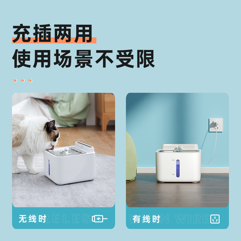 猫咪自动饮水机宠物饮水器不插电无线循环猫喝水器流动感应不湿嘴 升级款无线感应(2600毫安,续航45天) 无规格