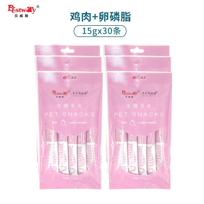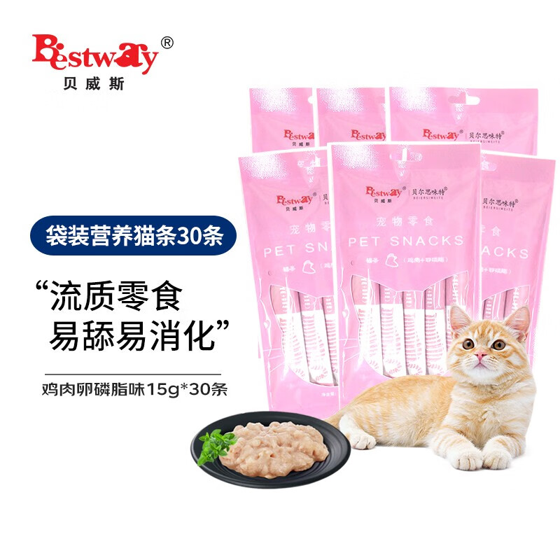 贝威斯猫条猫零食 鱼肉猫条幼猫成猫孕猫增肥发腮营养食品罐头湿粮补钙 鸡肉 卵磷脂口味15g*30条