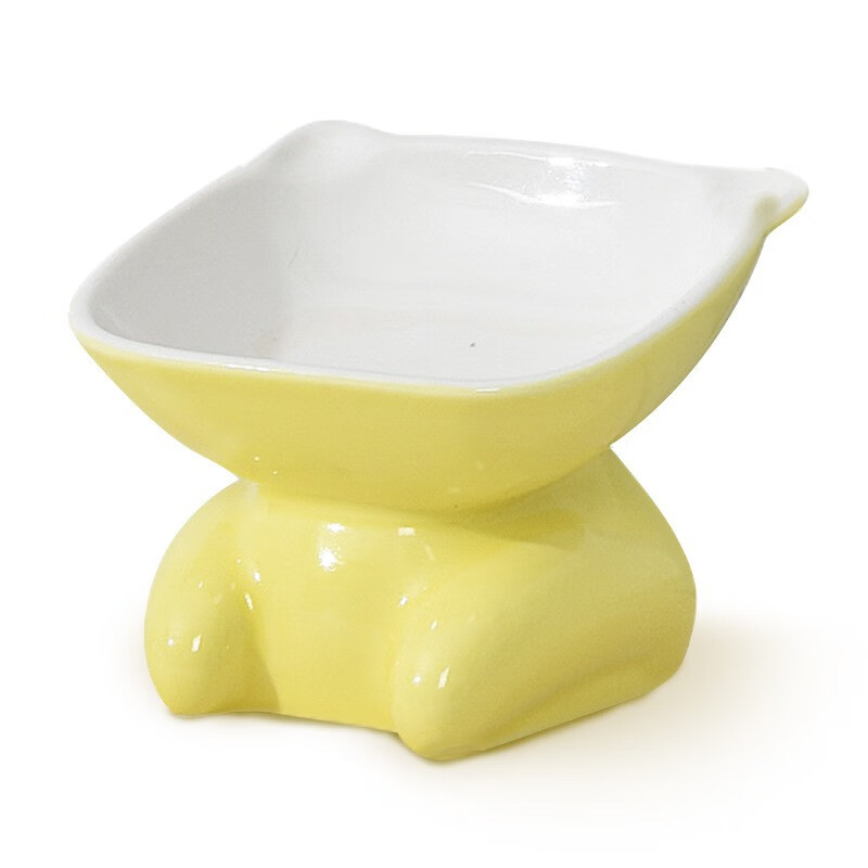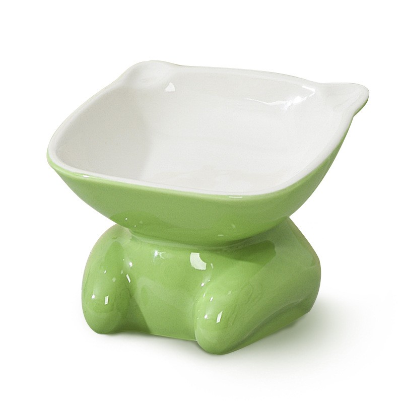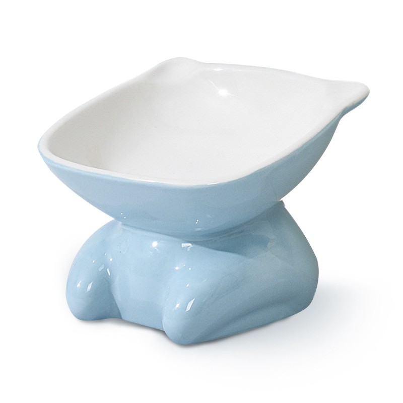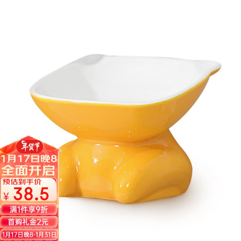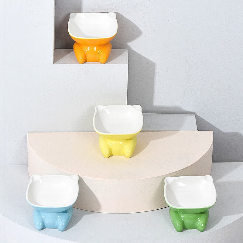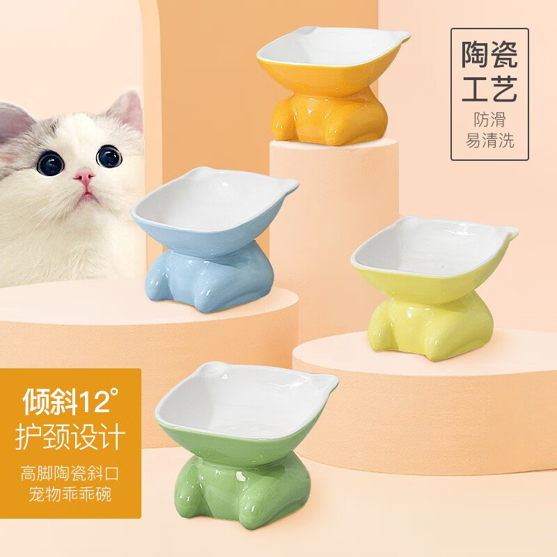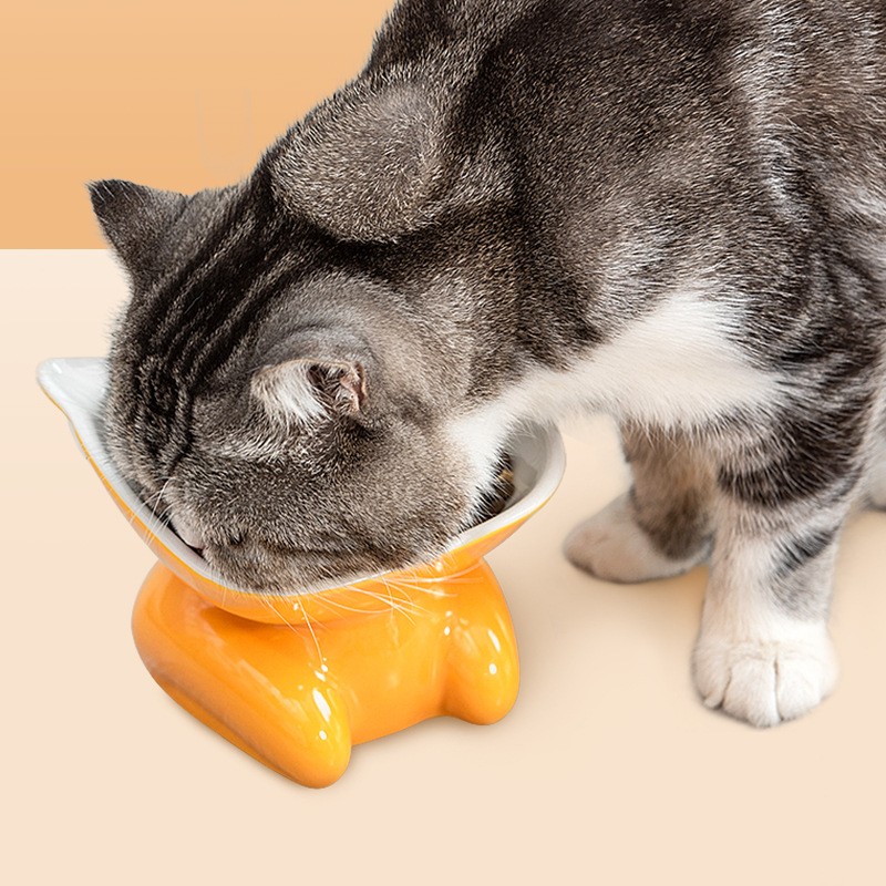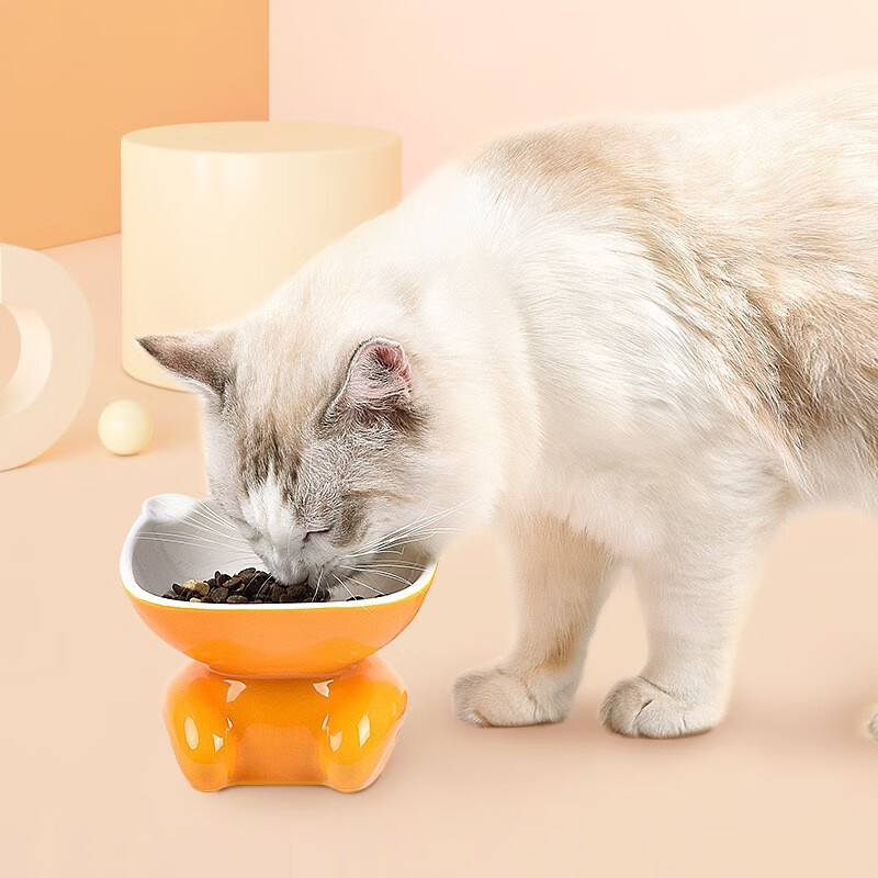 伴笛猫碗陶瓷猫粮碗高脚斜口碗护颈防打翻水碗猫食盆猫食碗猫咪用品 橙色【浅碗】