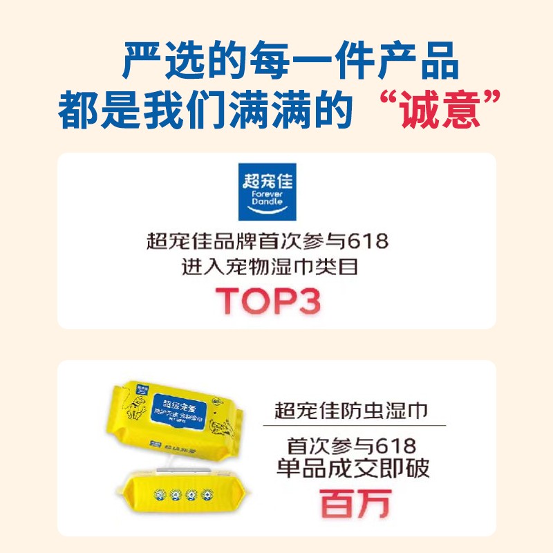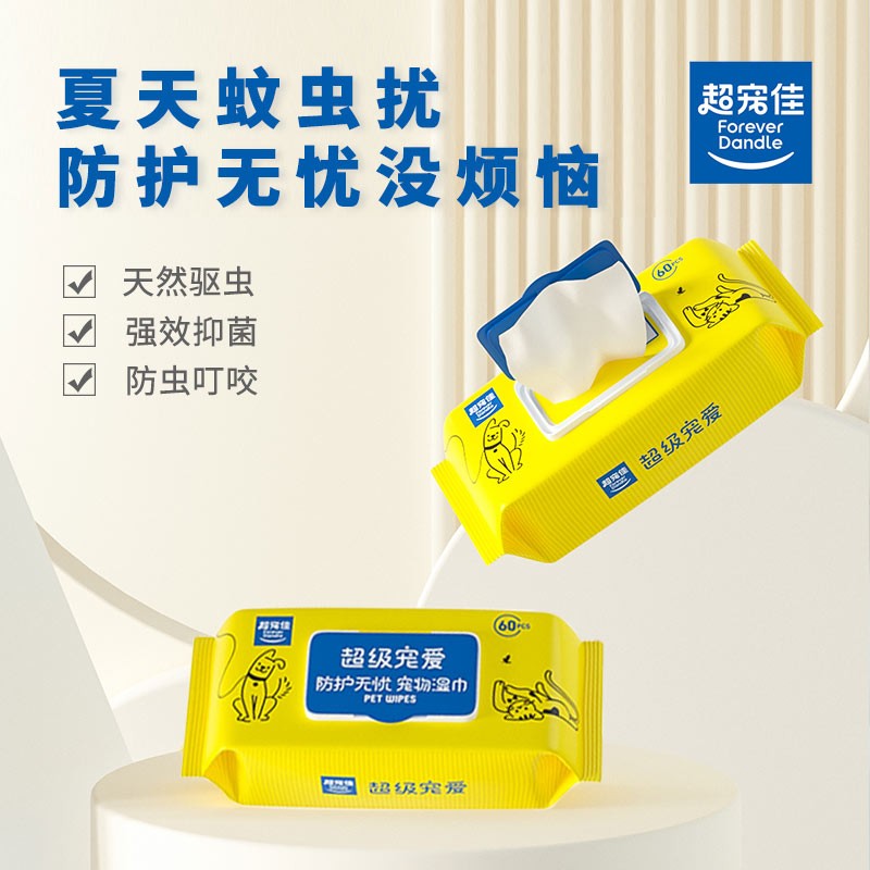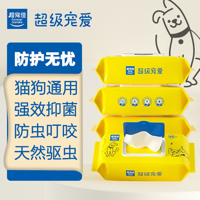 超宠佳防护无忧宠物湿巾狗狗猫咪天然驱虫强效抑菌猫咪身体清洁防虫叮咬 宠物防护湿巾 60抽*10包