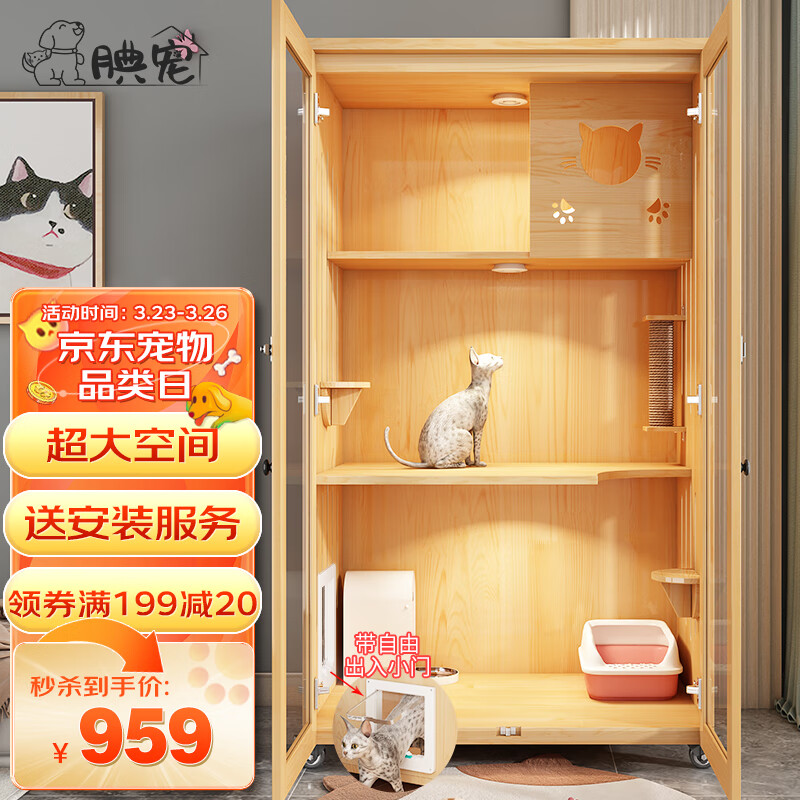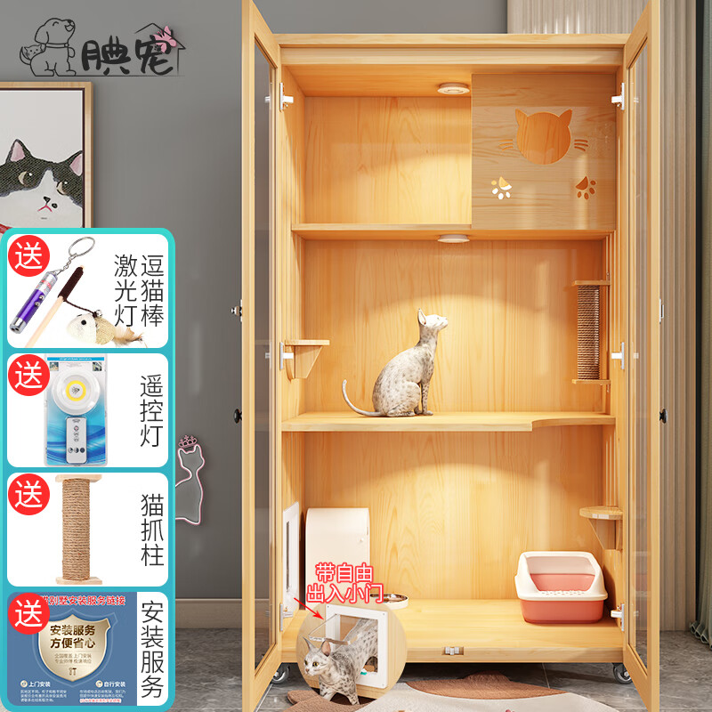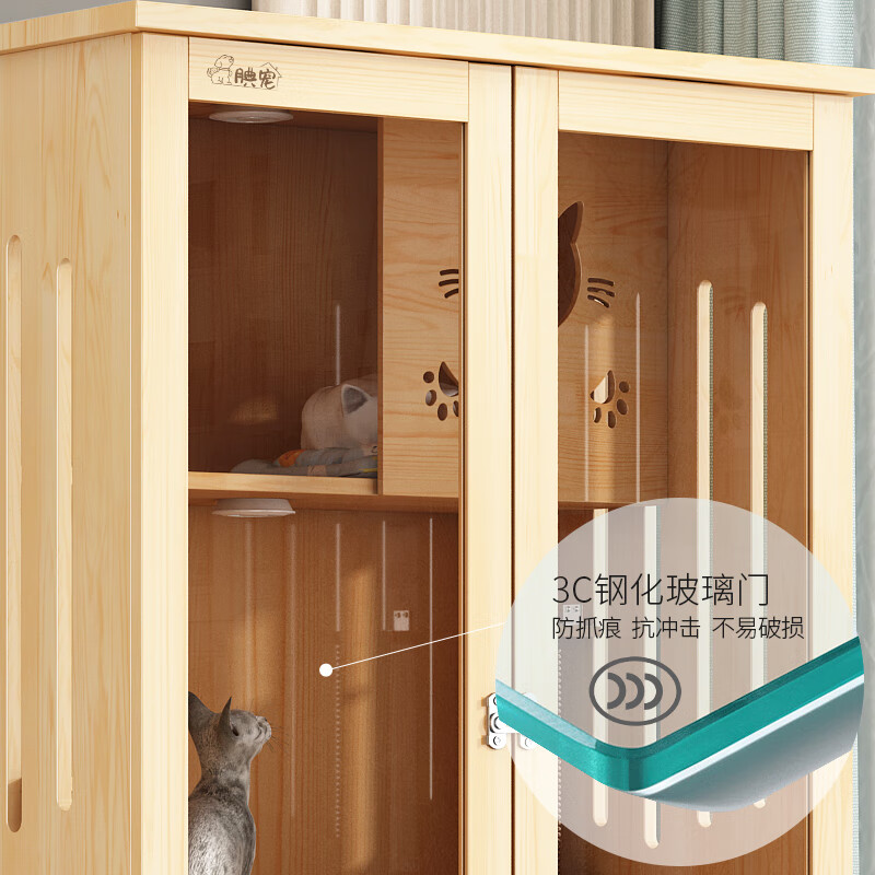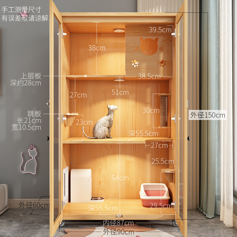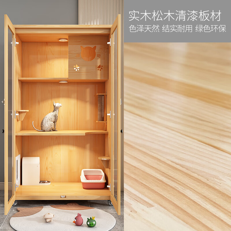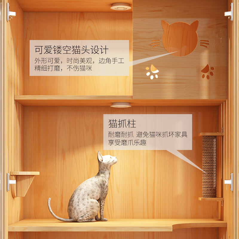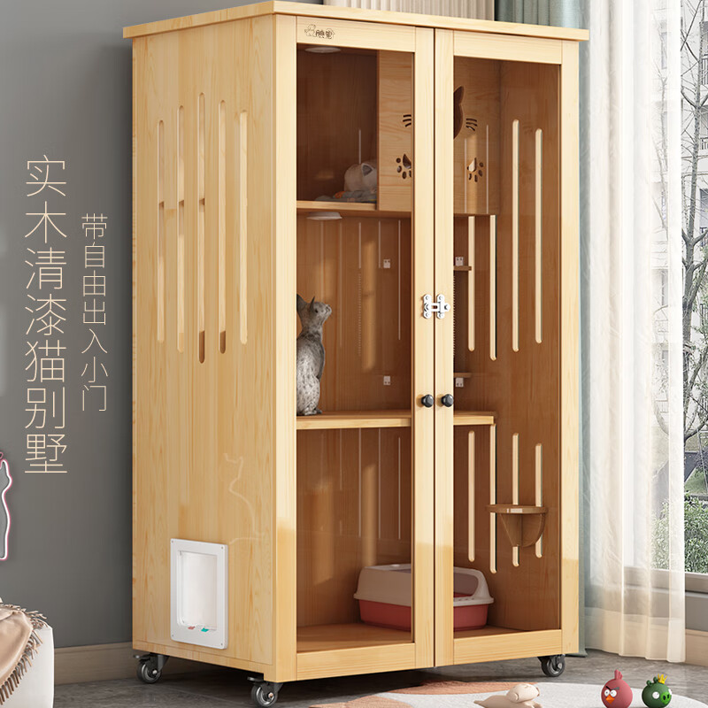 腆宠 猫笼猫别墅实木清漆猫柜猫笼子大号家用宠物猫窝猫舍150*90*60cm
