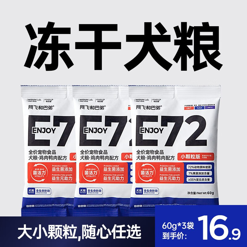 阿飞和巴弟【老爸抽检】E72全价冻干狗粮无谷大中小型犬成犬幼犬通用狗粮 【小型犬】小颗粒试吃装180g