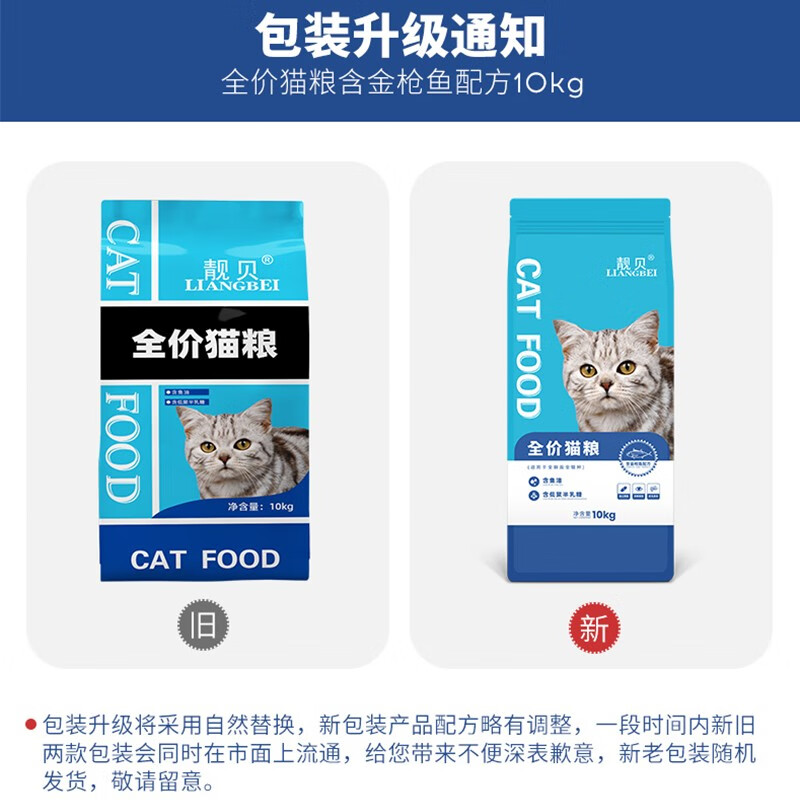 靓贝猫粮10kg单色颗粒幼猫成猫通用20斤猫粮 10kg