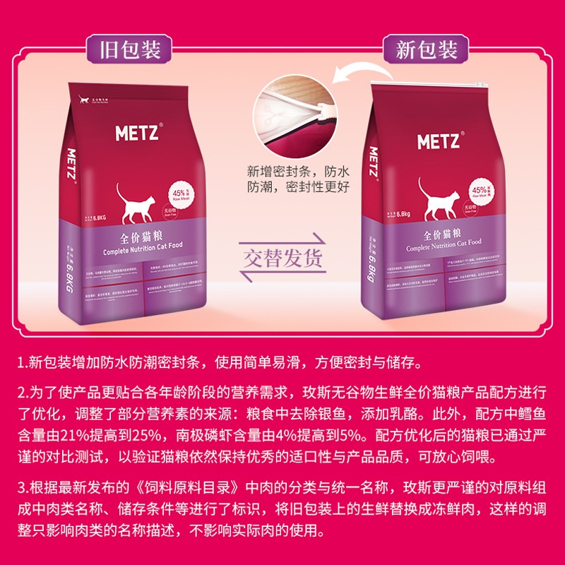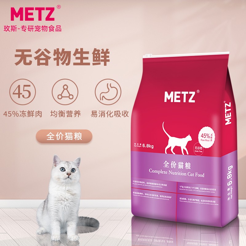 玫斯(metz)猫粮无谷天然猫粮 成猫幼猫全阶段鲜肉孕猫全价奶糕猫粮 全猫粮6.8KG(全阶段)