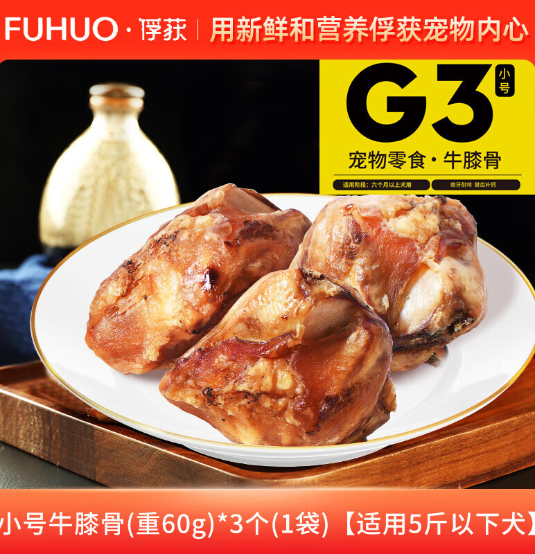 牛膝骨头狗狗磨牙棒洁齿耐咬幼犬小型犬大型犬宠物奖励零食 1包 小号牛膝盖骨60g*3个【适用5斤以下犬】