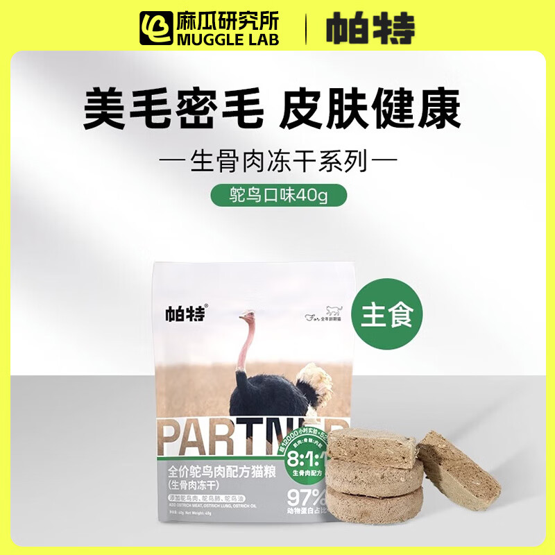 帕特冻干生骨肉主食猫零食猫冻干营养品成幼猫增肥猫主粮 【尝鲜装】冻干鸵鸟40g