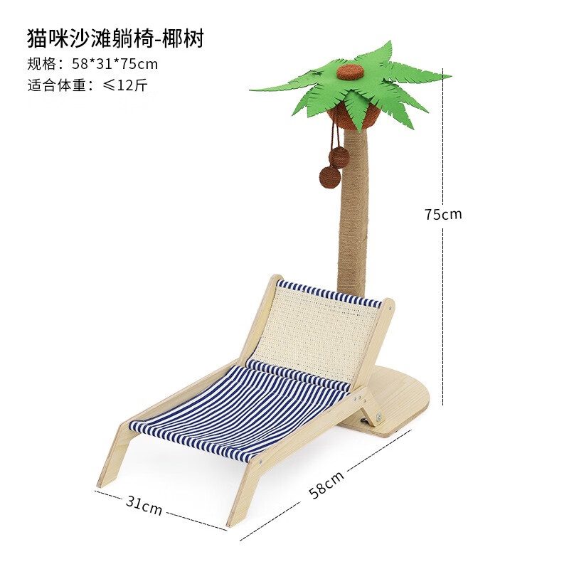 POPOCOLA猫抓板猫咪躺椅一体夏季耐抓耐磨幼猫用小沙发猫咪抓板猫窝 沙滩躺椅 椰树(适合12斤内)