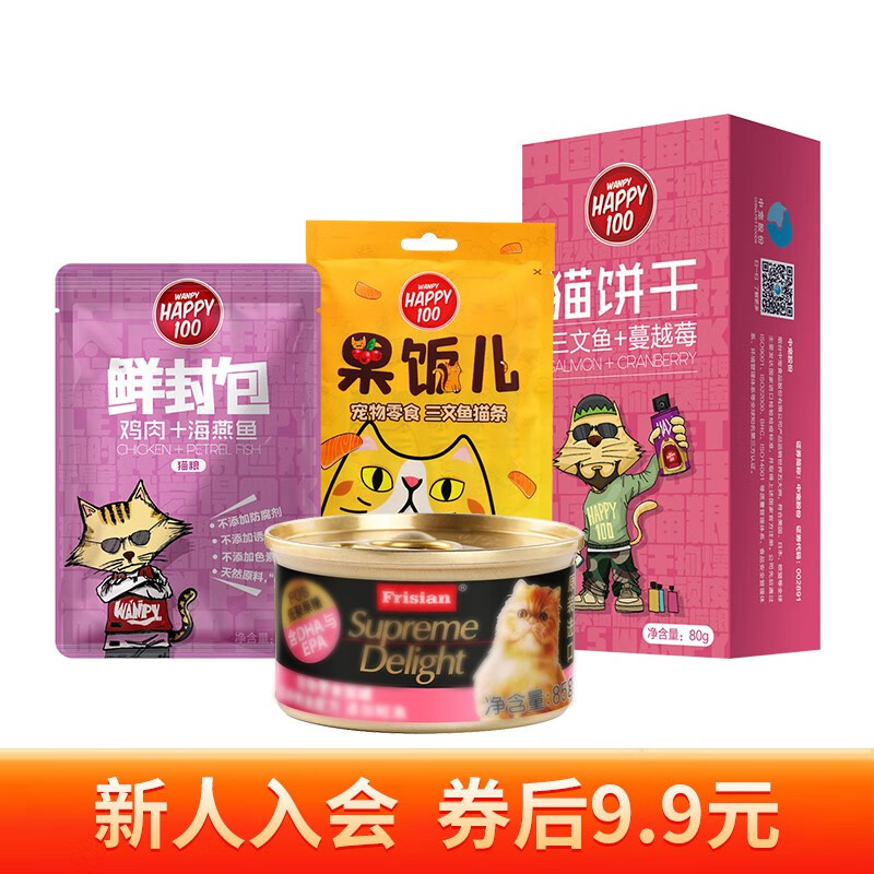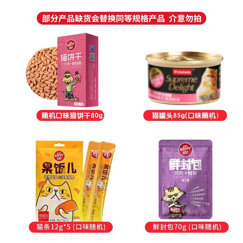 顽皮(Wanpy)猫零食组合装猫粮鲜封包礼包 猫零食试吃装 12g*5猫条 饼干 85g罐头