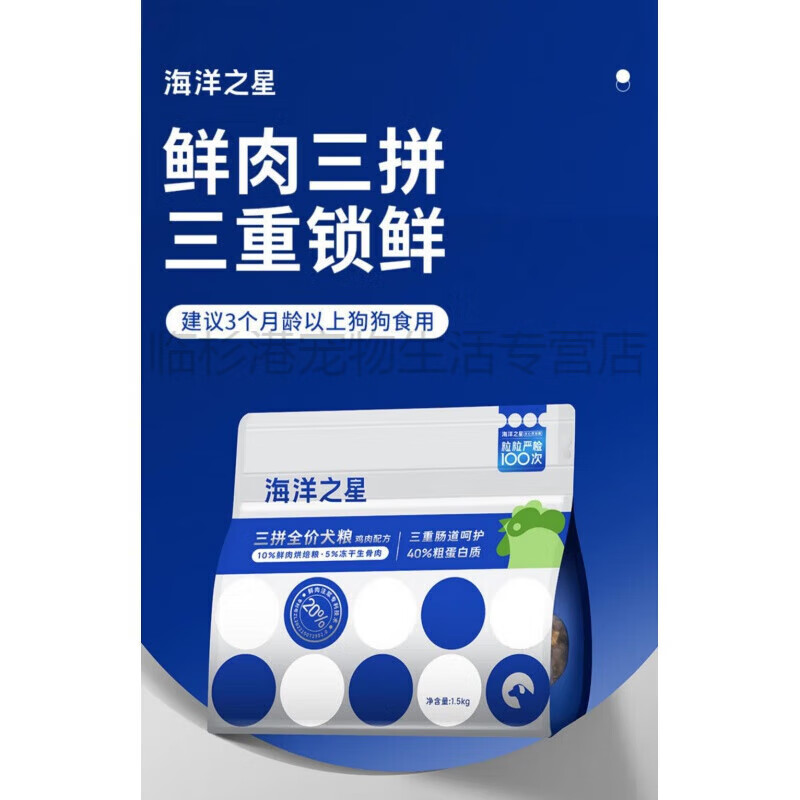 海洋之星三拼犬粮冻干生骨肉烘焙粮1.5kg增肥柯基狗粮主粮成犬粮 鸡肉味 1.5kg
