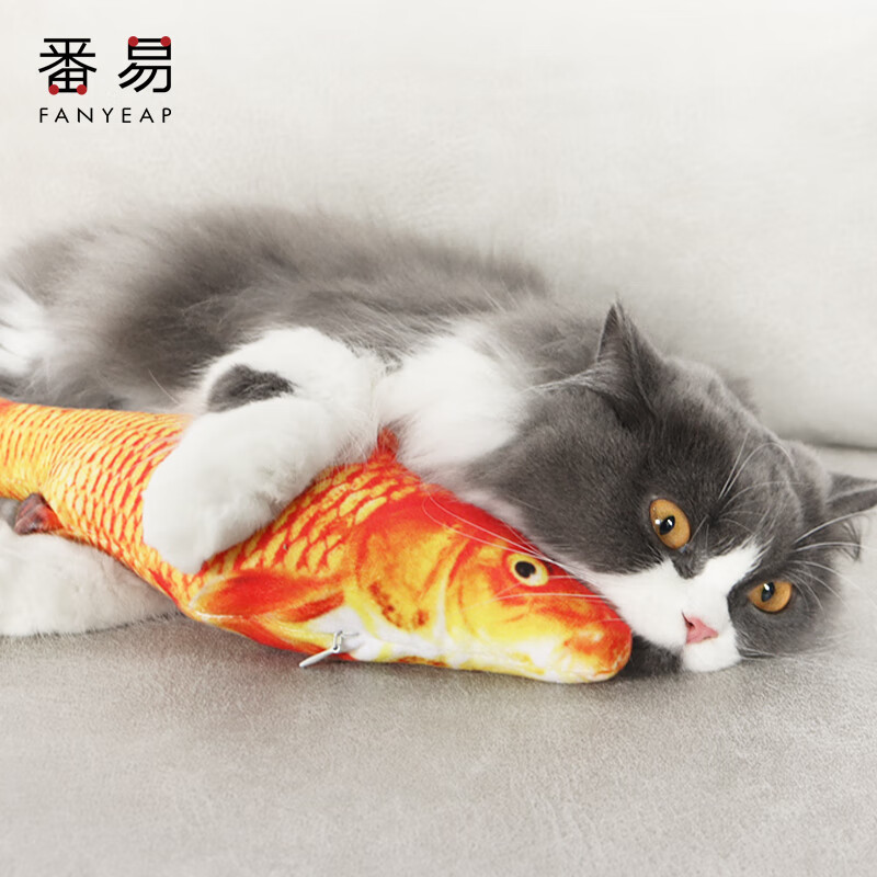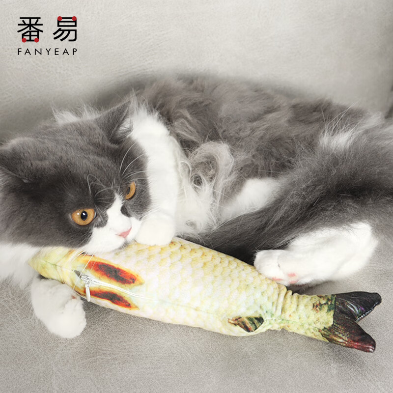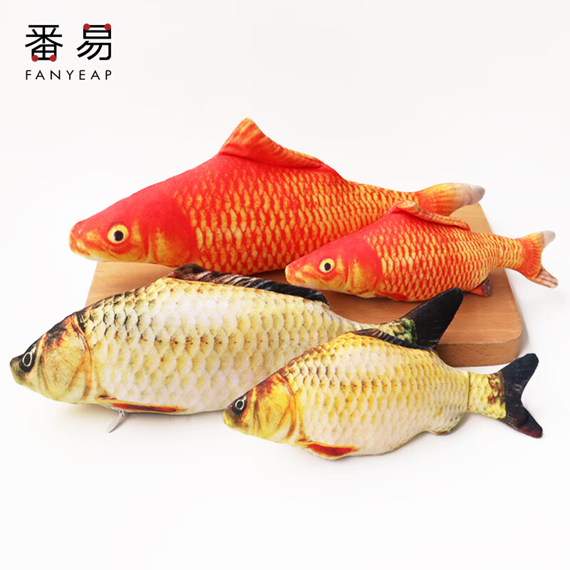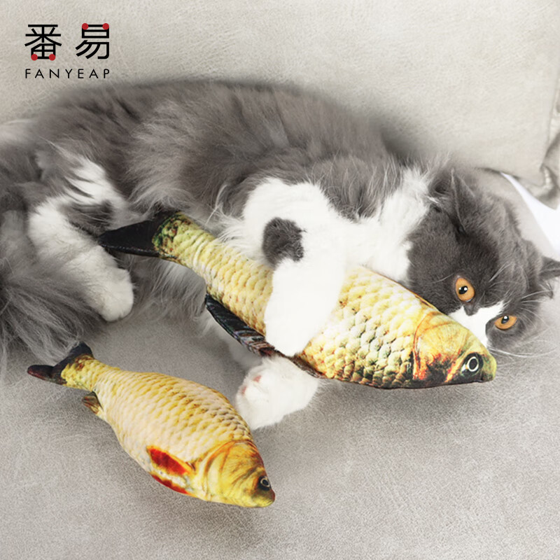 番易 仿真鱼铃铛逗猫解闷耐咬可啃咬自嗨小玩具幼猫逗猫咪玩具宠物用品猫玩具鱼 鲫鱼20cm(不带拉链)1条