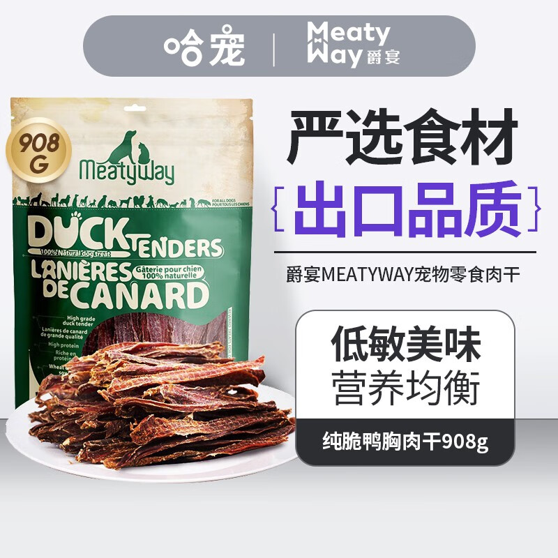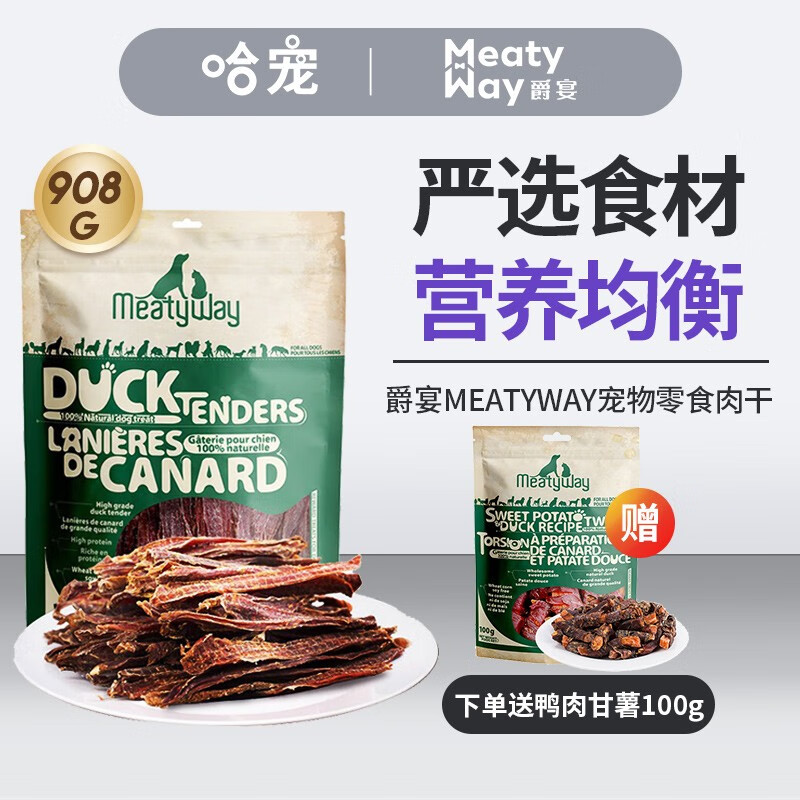 爵宴(MEATY WAY)狗狗零食大礼包鸭肉鸡肉干 狗狗训练奖励零食宠物磨牙棒 纯脆鸭胸肉干908g