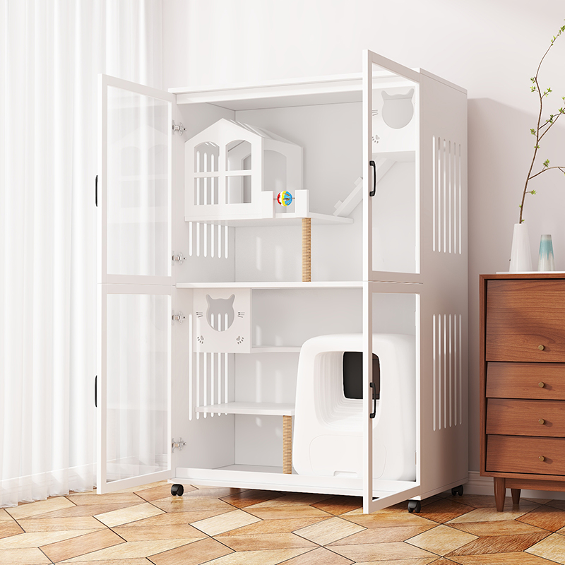 七夕旺猫笼子 实木生态猫别墅 猫笼木质 猫舍猫窝封闭式 防水可擦拭消毒 高175宽120深65(三色可选)