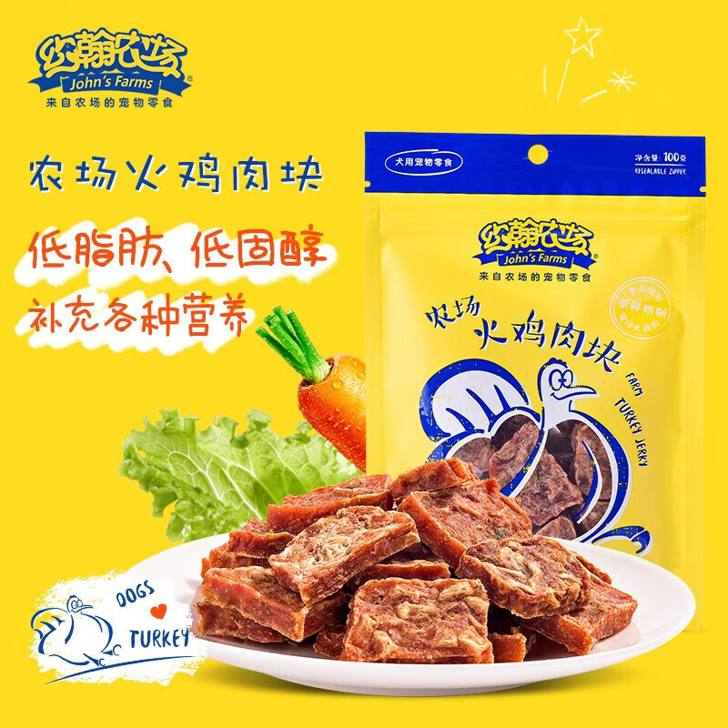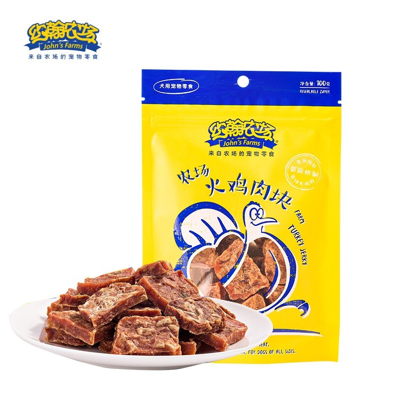 约翰农场狗狗零食大礼包宠物训犬鸡胸肉干泰迪博美金毛幼犬洁齿磨牙肉干 火鸡肉块100g