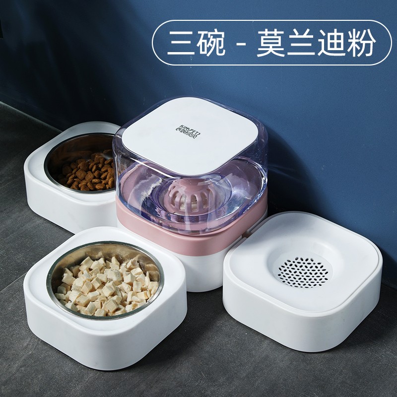 KimPets猫咪饮水机不插电流动喝水器狗狗自动喂水喂食猫防湿嘴打翻宠物碗 三碗-莫兰迪粉 M-中型