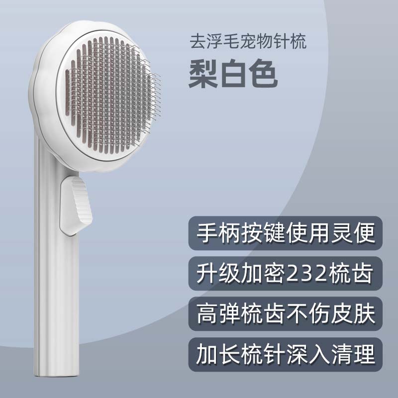 逗萌逗乐狗梳子猫咪去浮毛梳毛刷宠物狗狗猫毛清理器幼猫按摩针梳开结除毛 梨白色