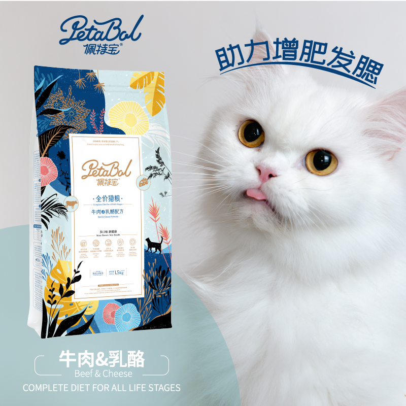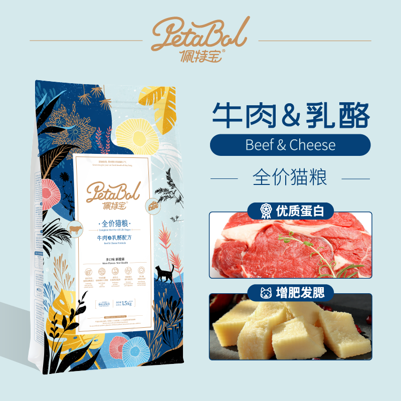 佩特宝(PETABOL)猫粮牛肉乳酪全价全期成猫幼猫冻干猫粮增肥发腮 牛肉乳酪全期猫粮1.5kg