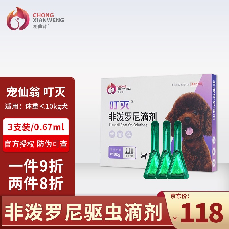 宠仙翁叮灭 宠物小型犬狗狗驱虫药 体外驱虫滴剂 非泼罗尼打虫药 去虱子除跳蚤 0.67ml 小型犬10kg以下(整盒3支)