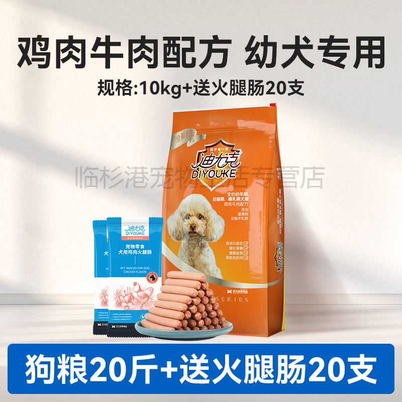 迪尤克狗粮幼犬专用粮10kg高钙金毛拉布拉多中大型犬通用型20斤装 幼犬通用( 火腿20根 10kg