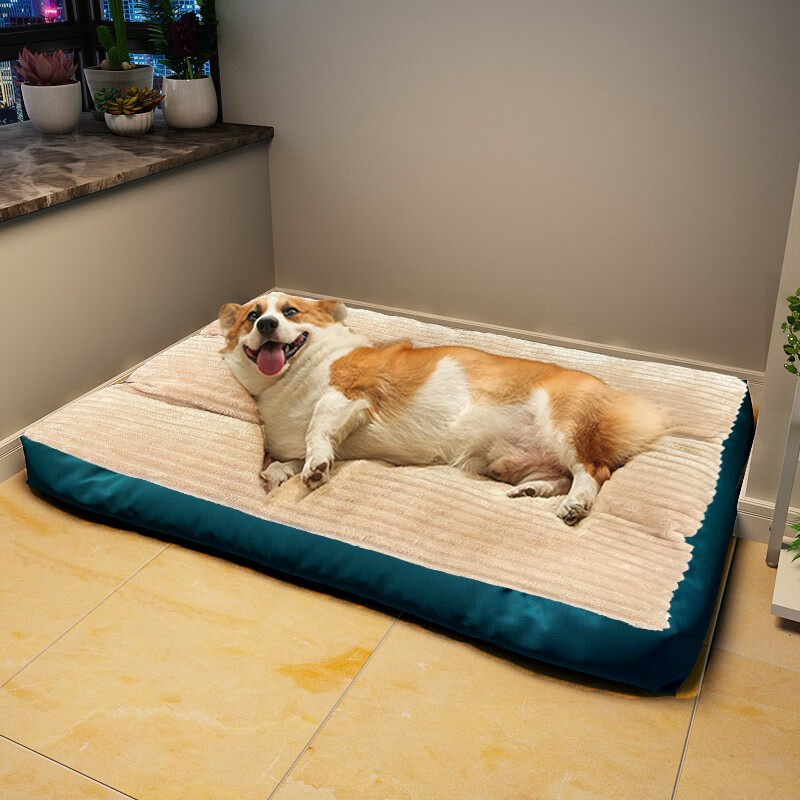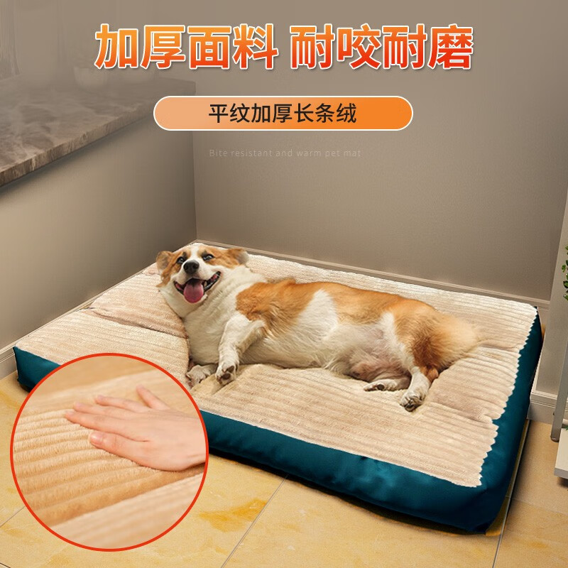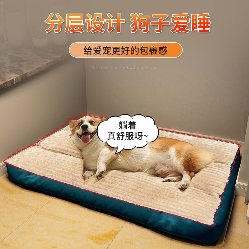 蔻丝狗垫子睡觉用宠物睡垫冬季保暖窝可拆洗中小型犬四季通用狗垫 狗狗睡垫-舒适格条绒(宝蓝) 48*70*6CM【10斤内小型犬】