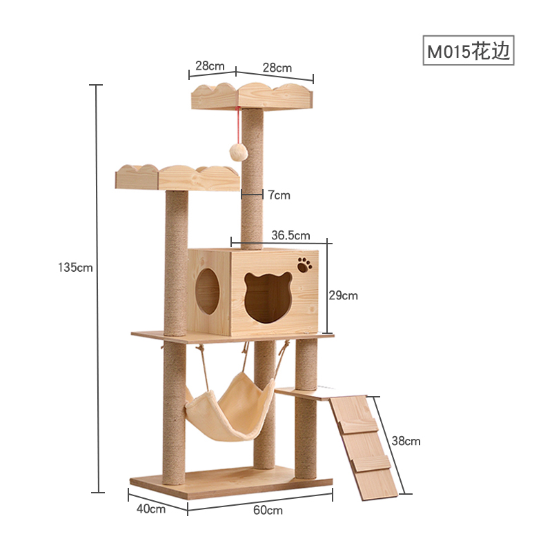 猫窝四季通用四季藤席猫抓板猫爬架大型猫抓柱密度猫树猫窝一体出口猫跳台 M015花边托
