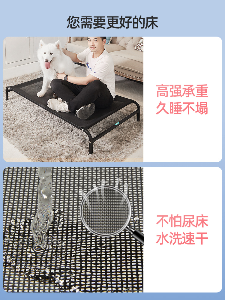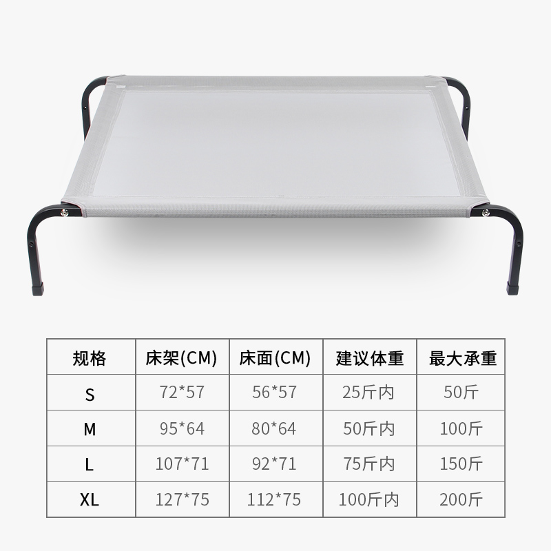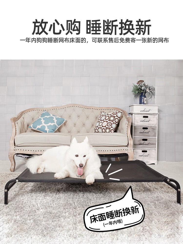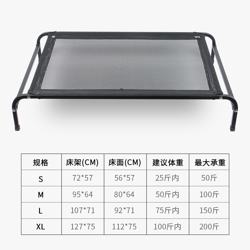 帕沐阁狗床狗窝宠物狗狗行军床四季通用离地中大型犬可拆洗狗垫夏季凉 黑色4横杆加强款铁架 网布 L码床面约71*92cm-建议75斤内宠