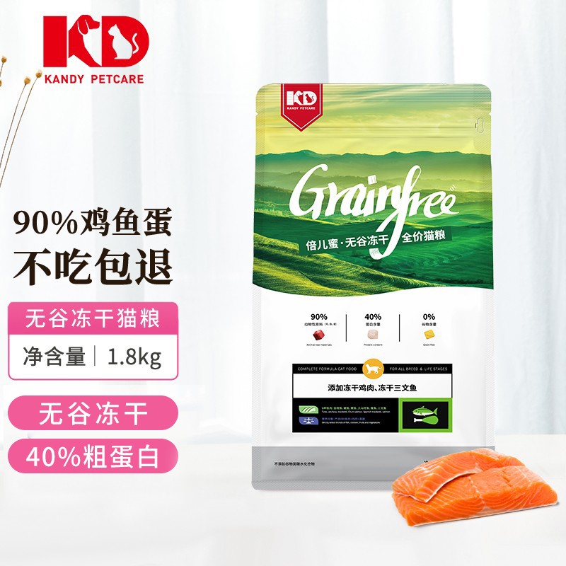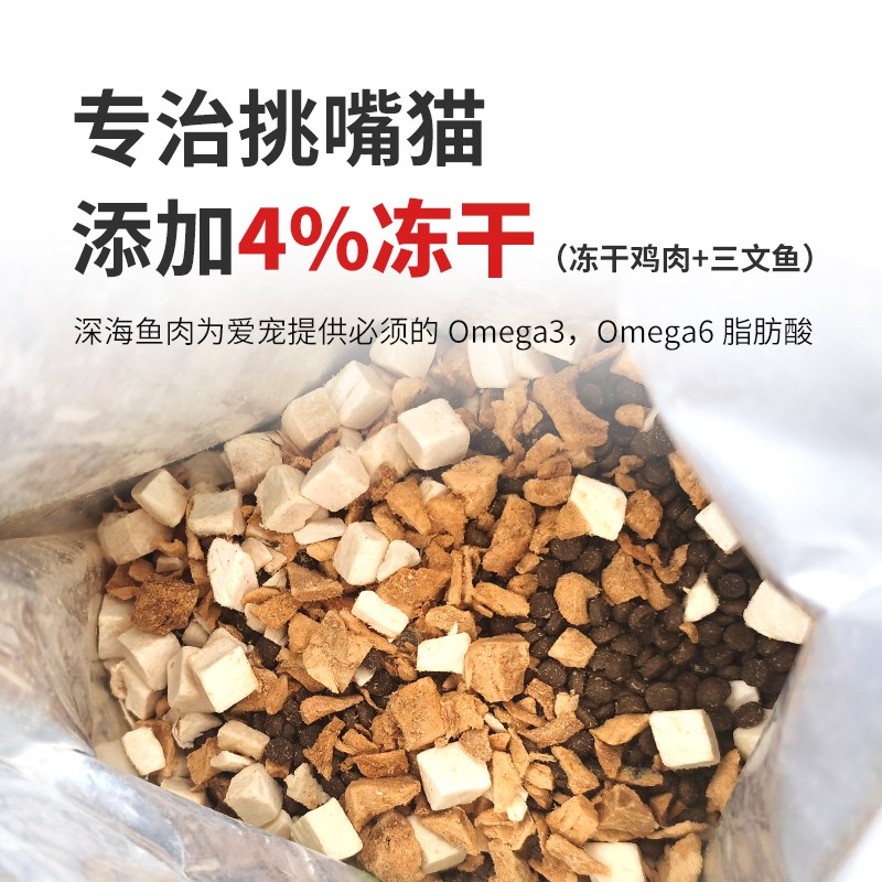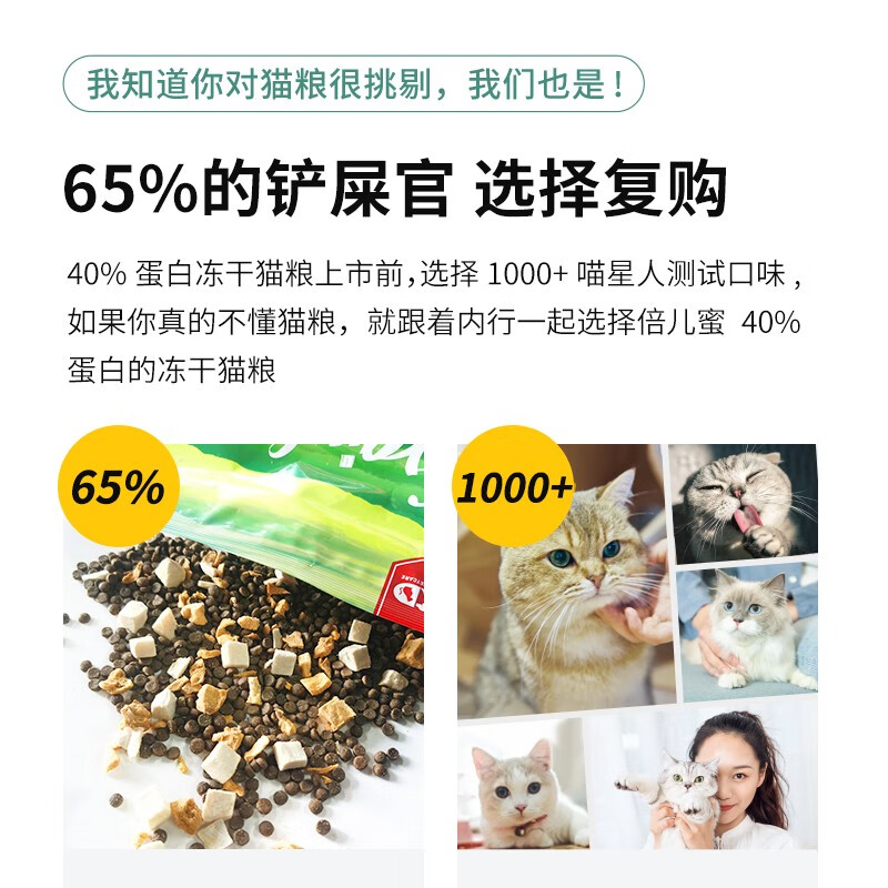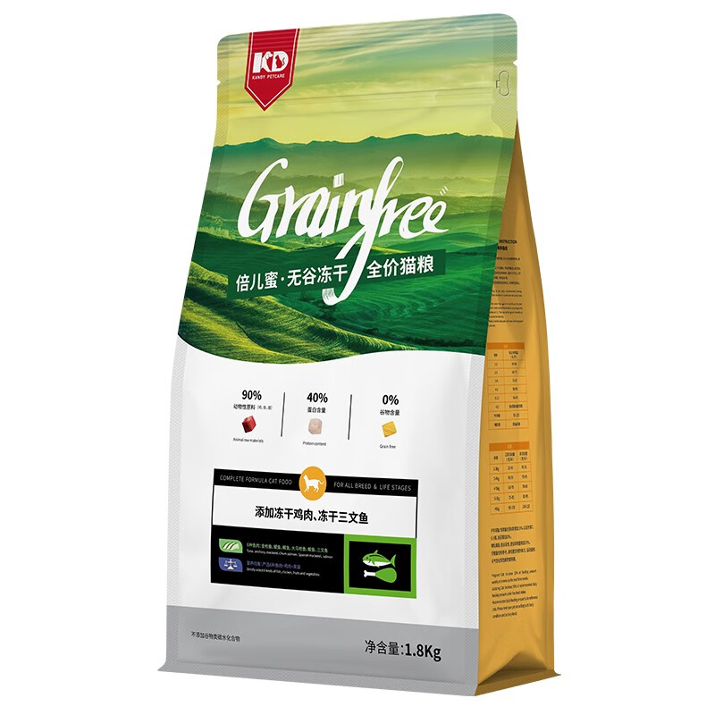 倍儿蜜全价冻干双拼无谷猫粮宠物主粮幼猫成猫40蛋白添加益生菌猫咪食品 升级装(1.8公斤/袋)