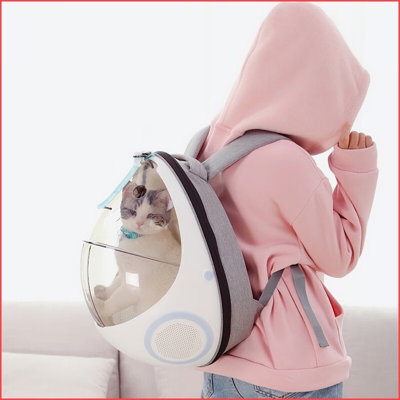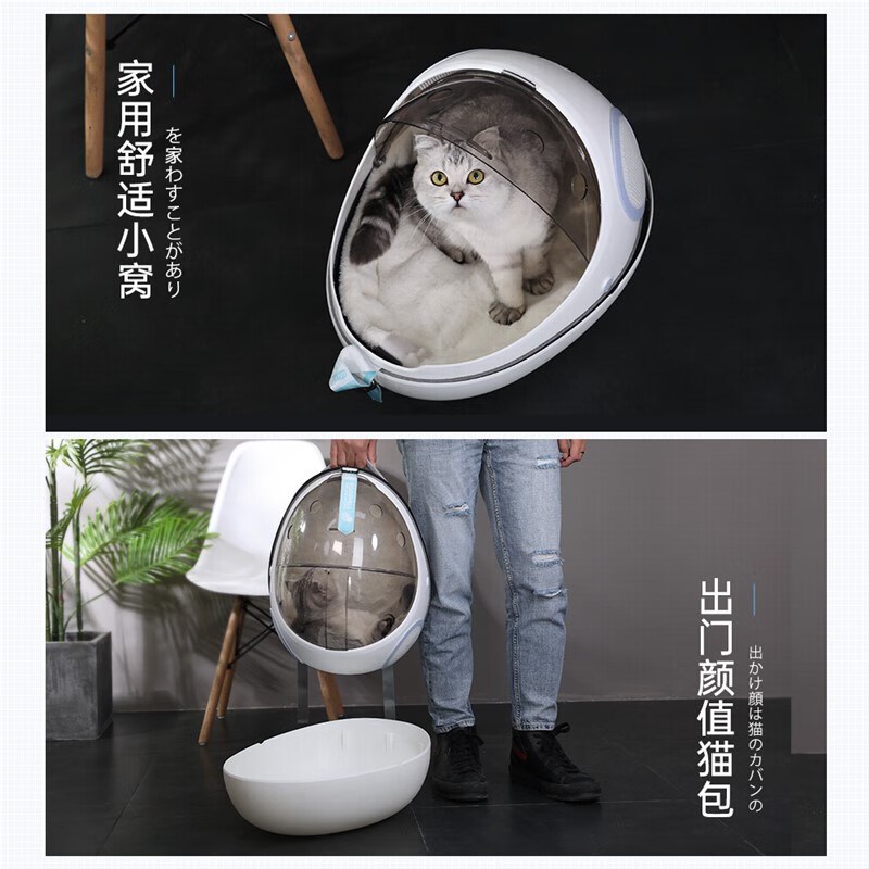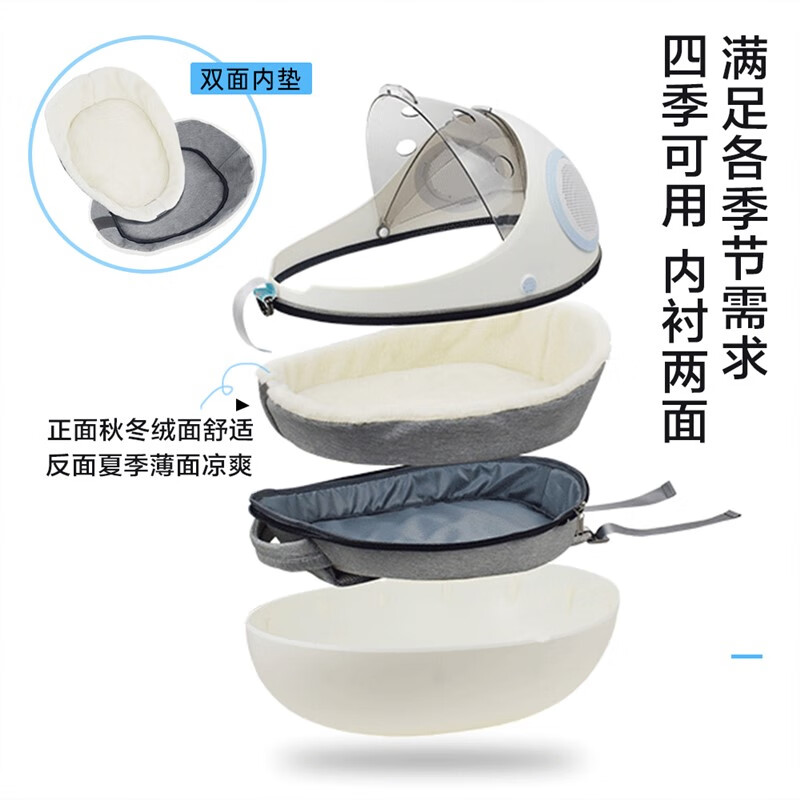 华元宠具(hoopet)猫包外出便携宠物背包太空猫咪舱猫猫携带猫袋双肩书包 两用背包-云白 15斤内猫咪适用双面垫子夏日亦