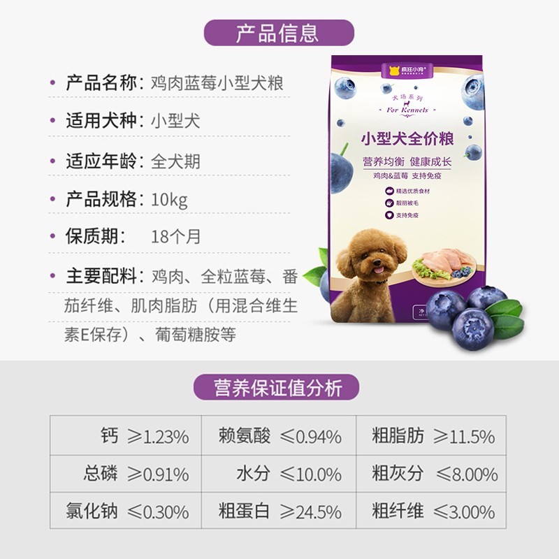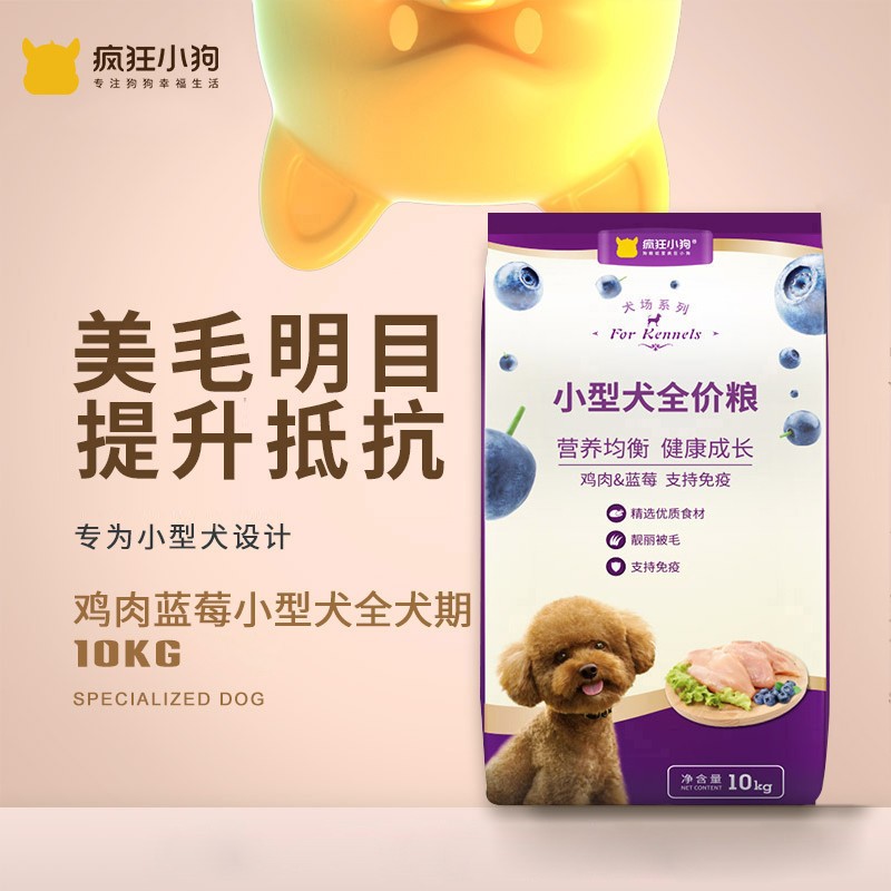 疯狂小狗泰迪贵宾比熊博美通用10KG鸡肉蓝莓口味宠物幼犬成犬天然狗粮 小型犬10kg