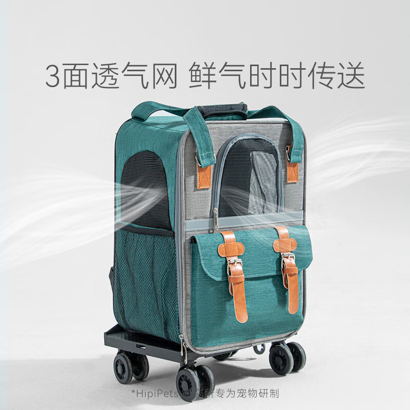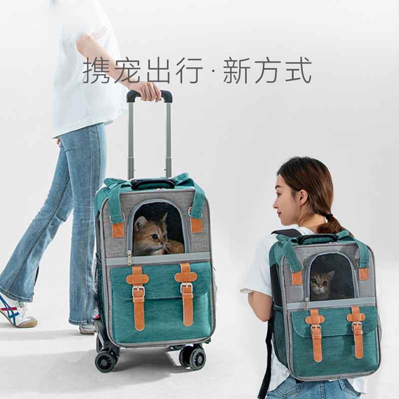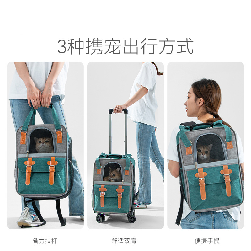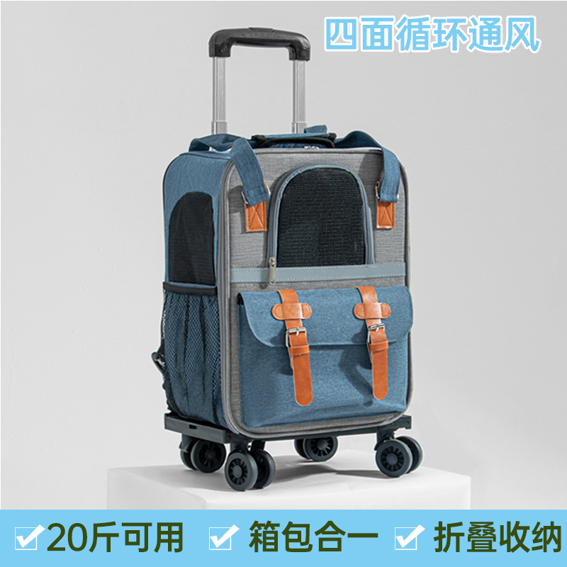 邦可臣 猫包大号拉杆双肩透气夏宠物狗狗外出包猫包便携大容量背包猫咪 【拉杆款-清爽水蓝】一包三用 超大号(20斤之内猫狗) 羊羔绒睡垫