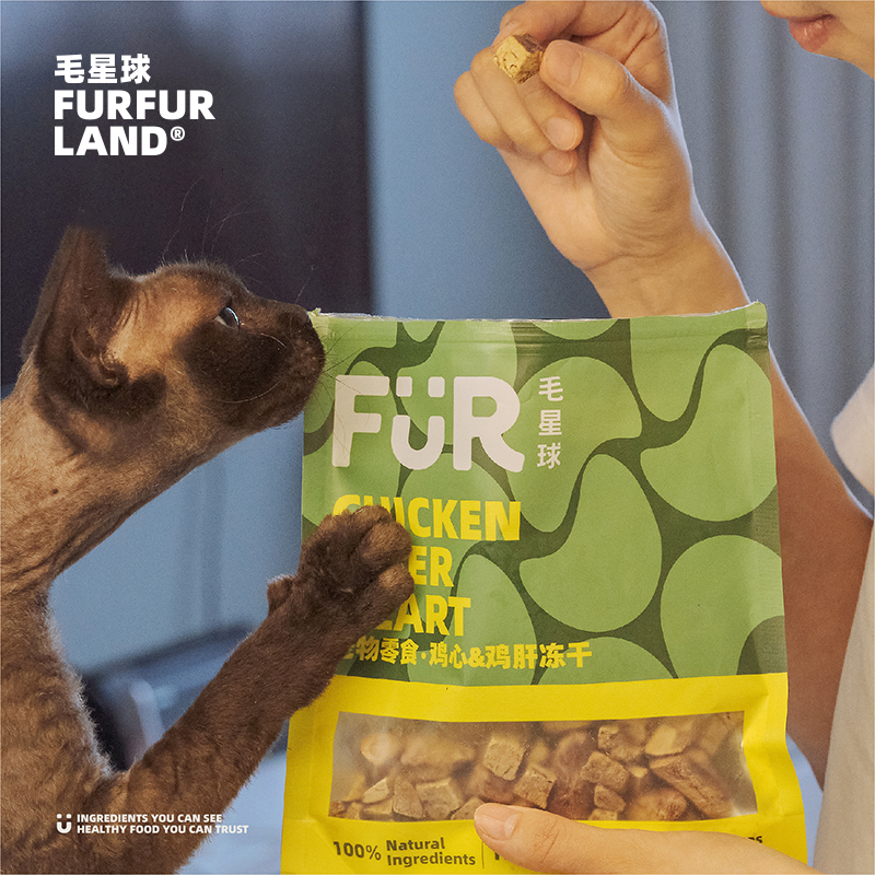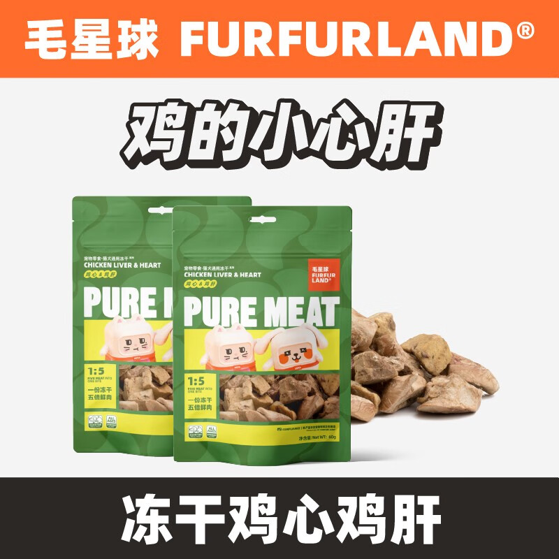 FurFurLand毛星球猫狗通用宠物特色零食鸡胸肉鸭肉鹌鹑鱼肉增肥发腮美毛护肤高蛋白冻干 鸡心鸡肝冻干60g*2