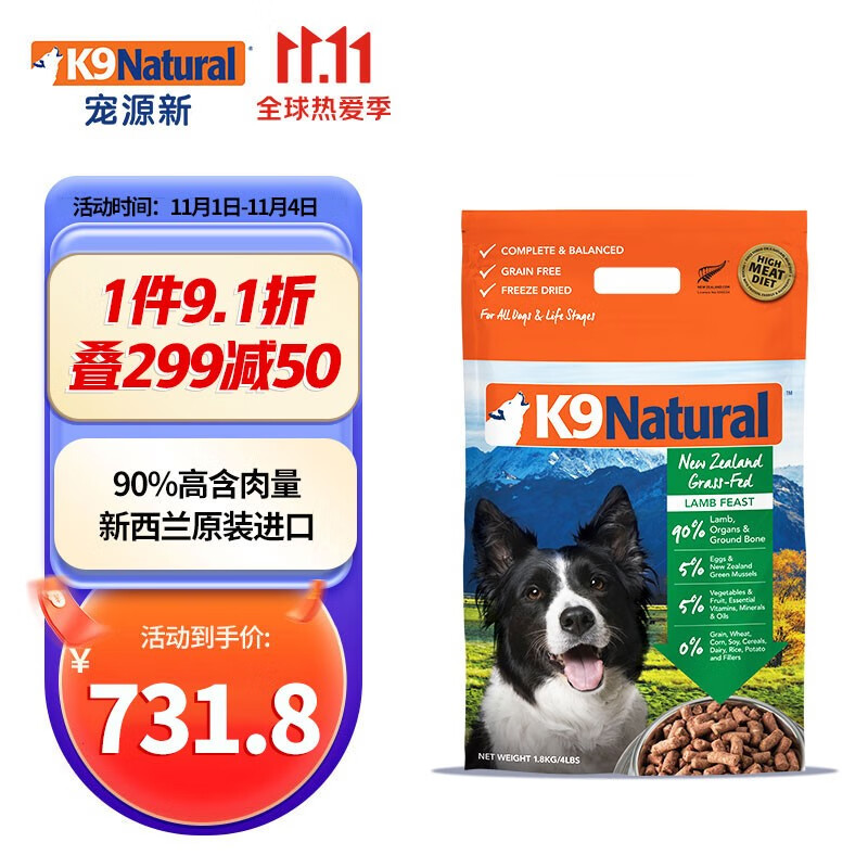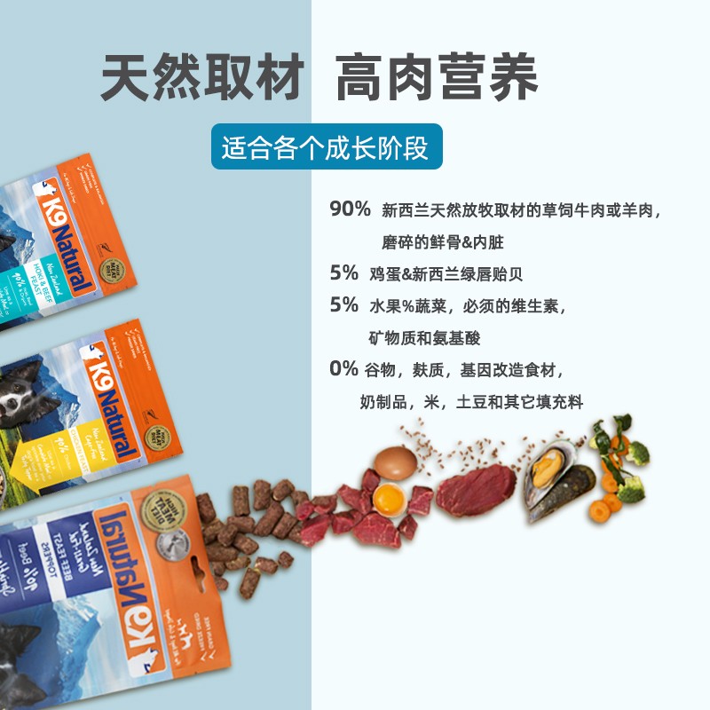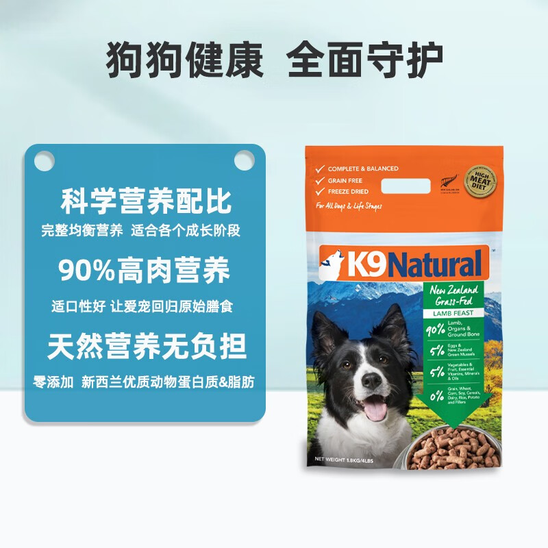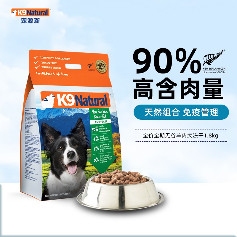 【顺丰发货】K9Natural 新西兰原装进口狗粮 成犬幼犬通用冻干犬主粮 羊肉味1.8kg