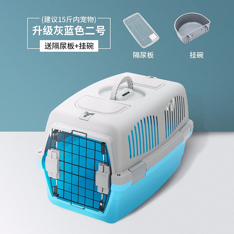 华元宠物航空箱猫包猫狗笼子猫咪国航飞机托运箱猫包太空舱手提箱小型犬便携车载外出用品 加厚款灰蓝L 15斤内-含隔尿板 挂碗