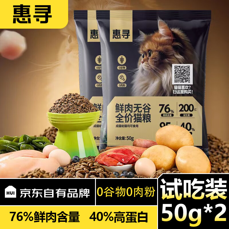 惠寻 京东自有品牌 全价无谷鲜肉猫粮 成猫幼猫通用 试吃装50g*2袋