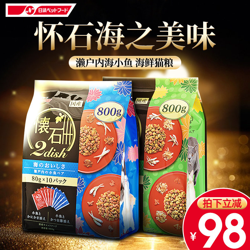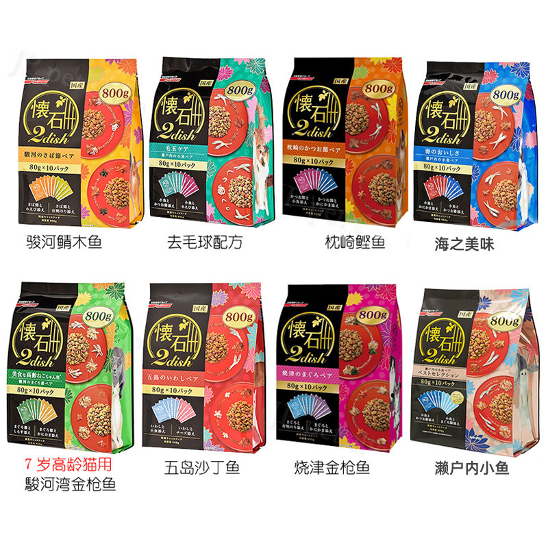 日本原装进口怀石猫粮2dish海之美味添加小鱼去毛球成幼猫粮800g