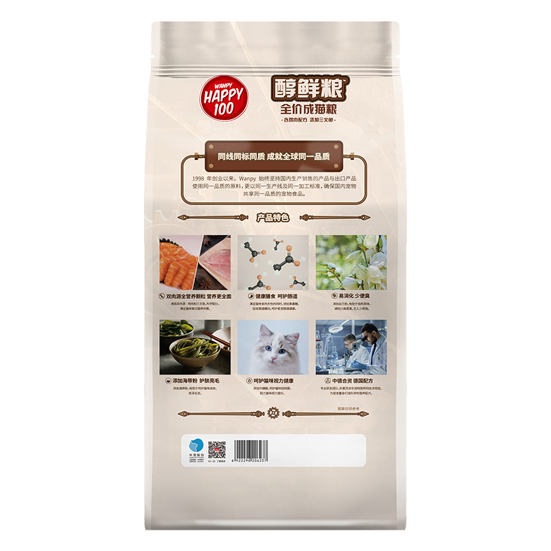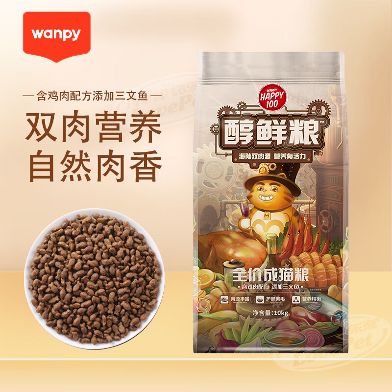 顽皮(Wanpy)醇鲜猫粮 成猫粮蓝猫美短全价猫咪主粮 鸡肉三文鱼配方10kg