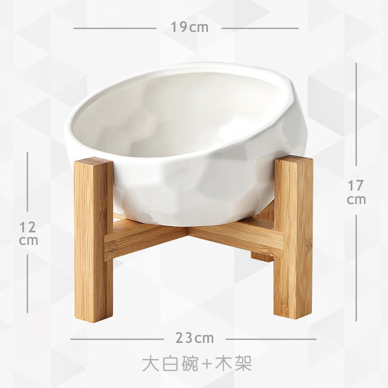 猫碗陶瓷猫食盆保护颈椎猫咪双碗狗狗水碗粮碗狗碗宠物碗 【钻石款】大白碗 木架 成猫或狗狗用 通用