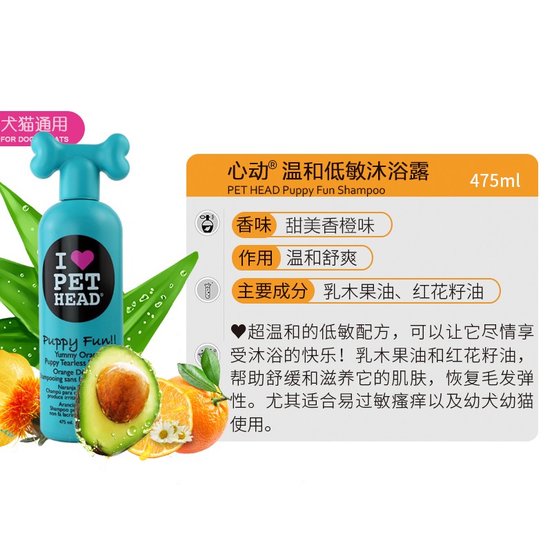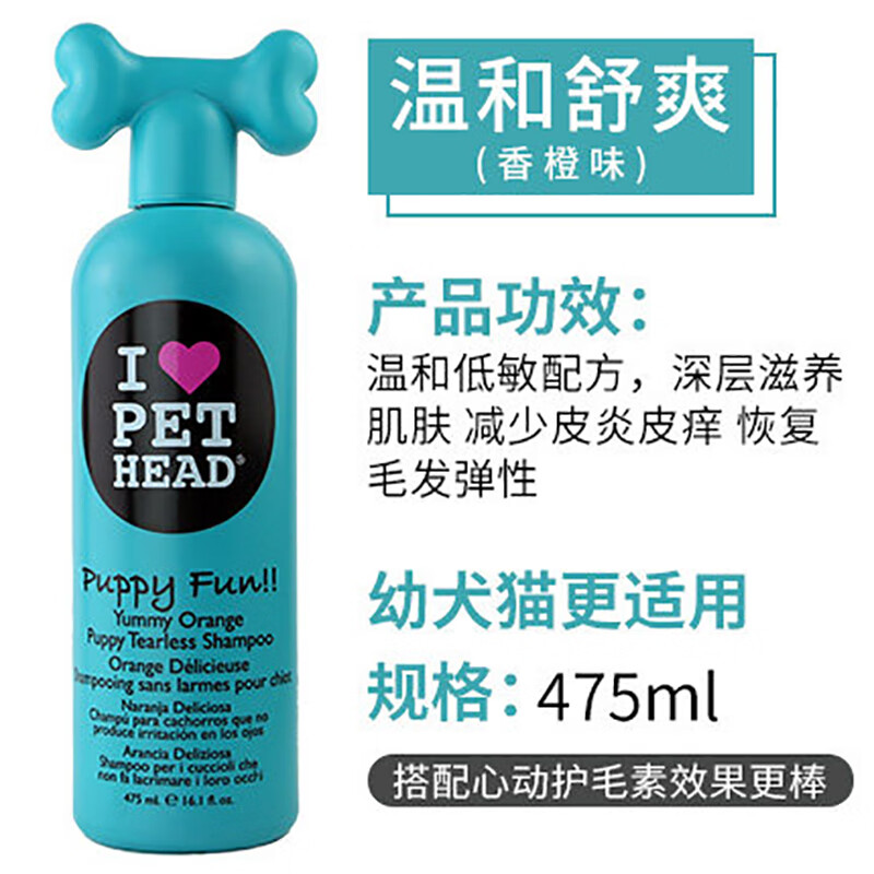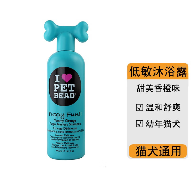 美国进口I PET HEAD心动 狗狗沐浴露 宠物除螨美毛洗澡香波浴液 护爪油 猫狗通用 网红沐浴露 低敏沐浴露(香橙味)幼犬幼猫专用475ml