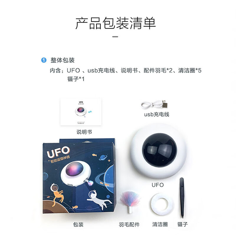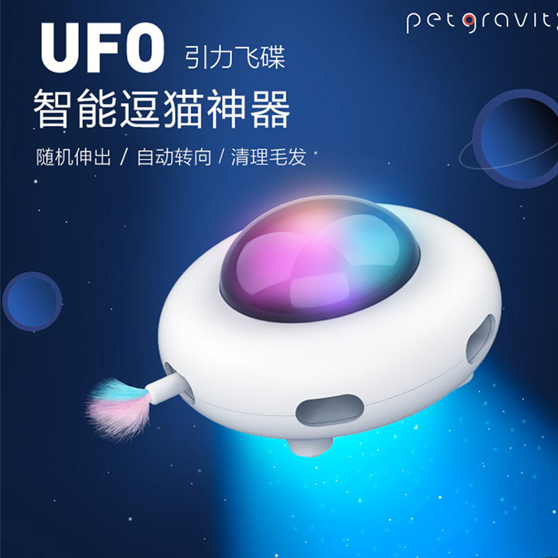 嬉皮狗智能逗猫棒自动猫咪玩具自嗨解闷神器猫玩具棒猫猫用品 UFO逗猫棒 白色